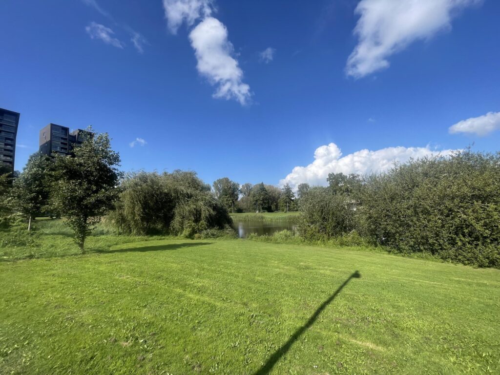 Bedroom II: Front of the house, 3.04m x 3.58m = 11 m², with laminate flooring, plastered walls, synthetic frames with HR+ glazing, and a beautiful view of the pond (part of the *Dommel* floodplain).