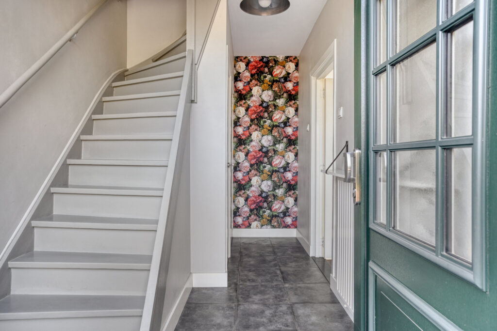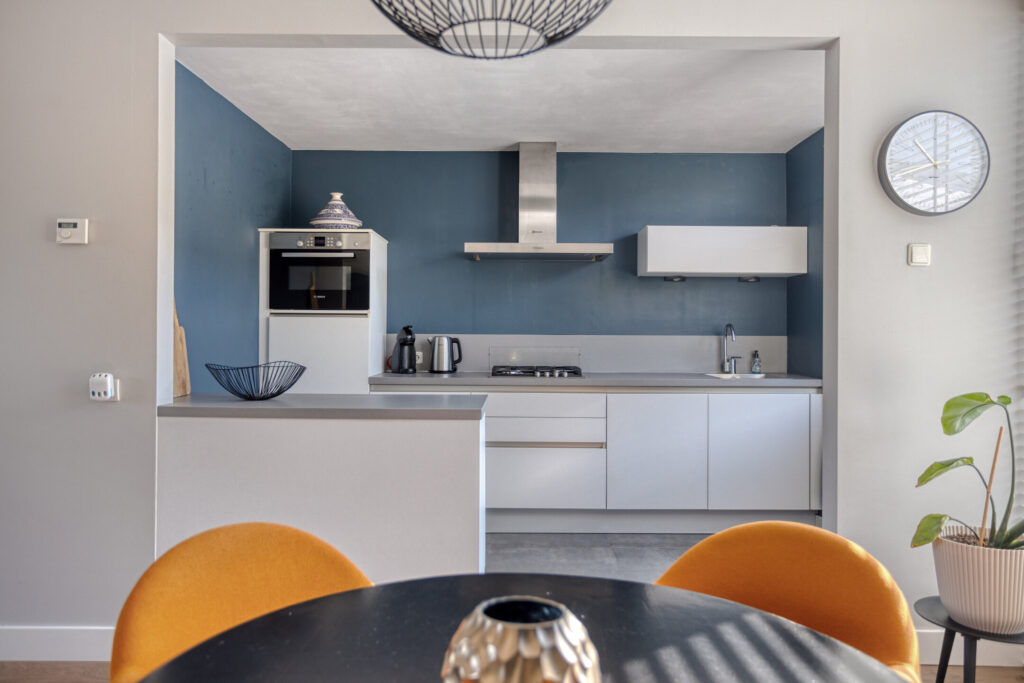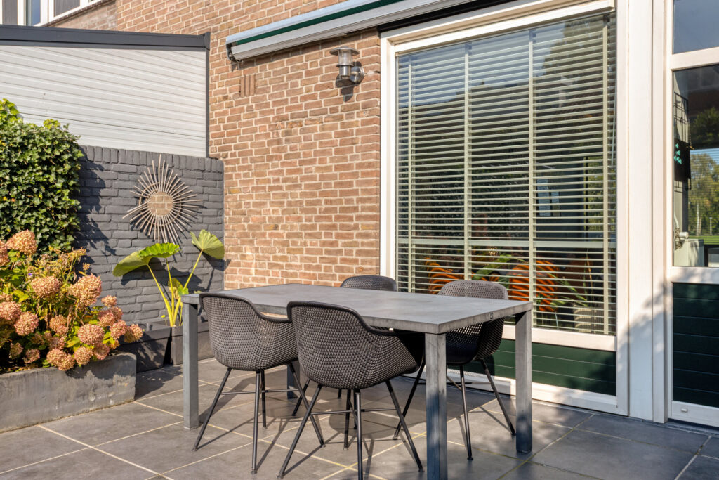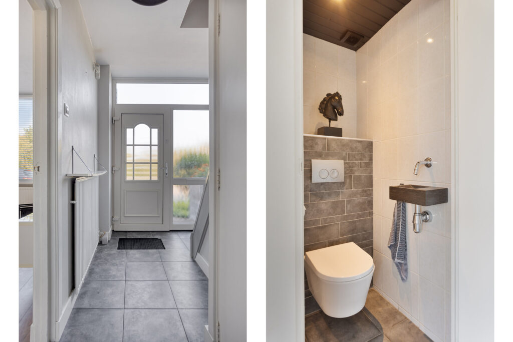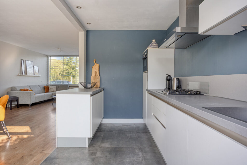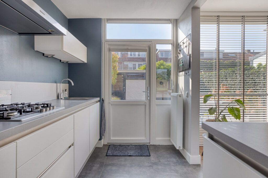 Upon entering, you will find a spacious hall with staircase to the first floor, a separate toilet, and access to the bright, inviting living room. The entire crawl space on the ground floor is insulated with granules, resulting in a well-insulated floor that increases comfort and lowers energy bills. The living room has large windows (synthetic frames with HR++ glazing) allowing for plenty of natural light, and offers a cozy sitting area. Adjacent is the dining area, seamlessly connecting to the modern open kitchen. The kitchen is fully equipped with a 4-burner gas stove, fridge, freezer, combi oven, dishwasher, and ample storage space. From the kitchen, you can access the low-maintenance south-facing garden, complete with a separate brick storage shed and rear entrance.