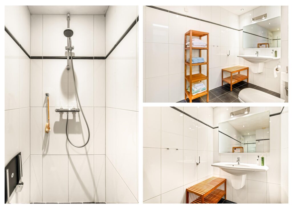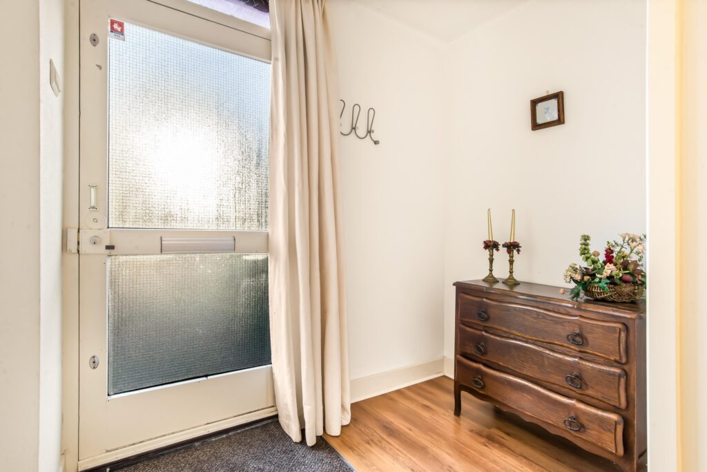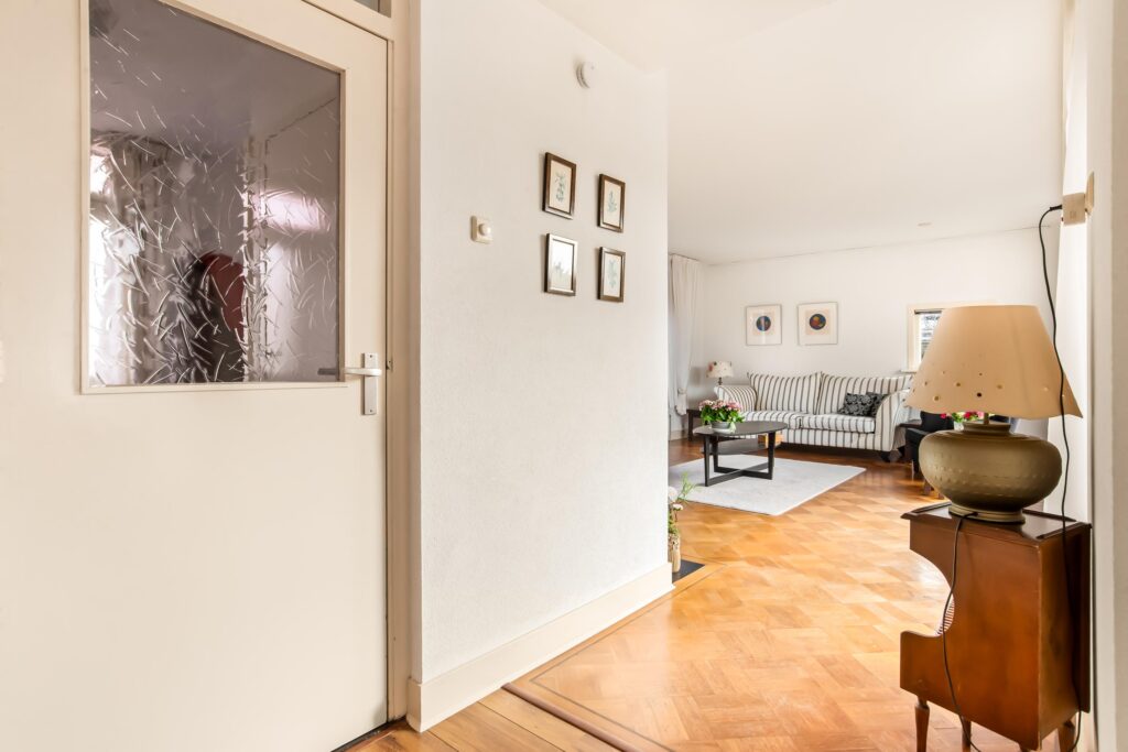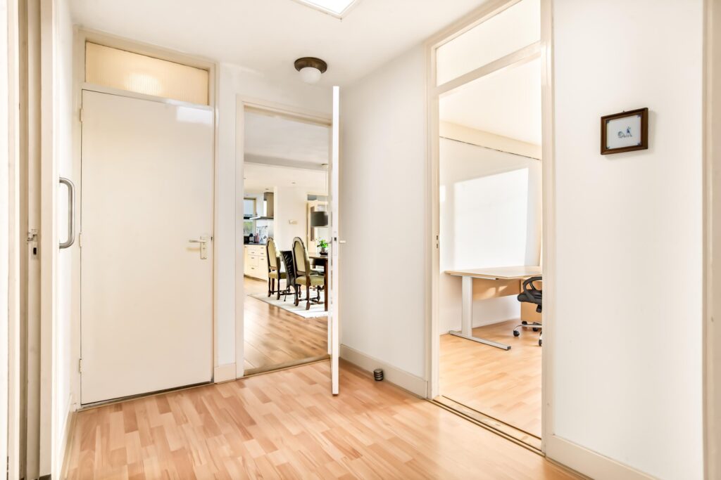 De entree bevindt zich centraal in de patiobungalow en vormt het hart van de woning. Vanuit de hal bereikt u links de lichte woonkamer en rechts de eetkamer met open keuken. Beide ruimtes bieden een prachtig zicht op de patio. Dankzij de grote raampartijen en schuifpui baadt de woning in natuurlijk licht en ontstaat er een fijne verbinding tussen binnen en buiten.
