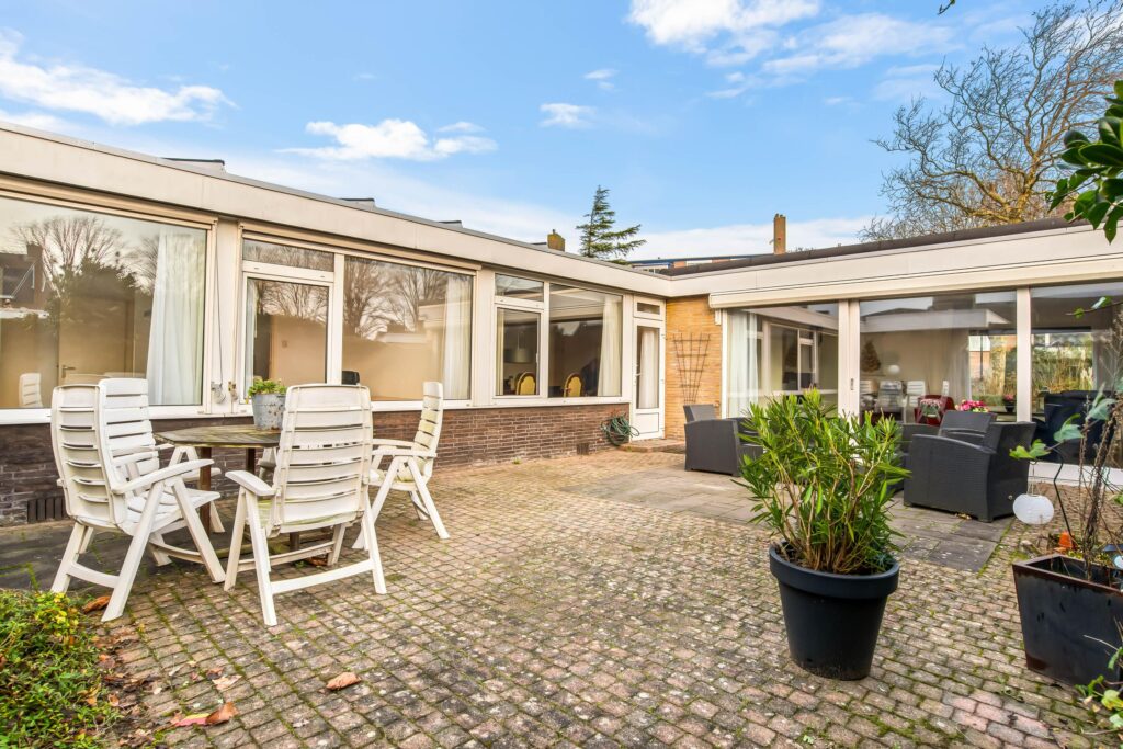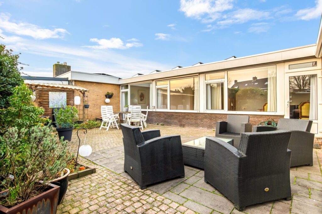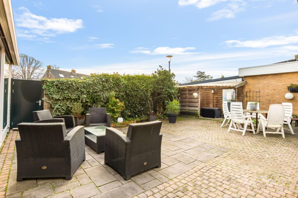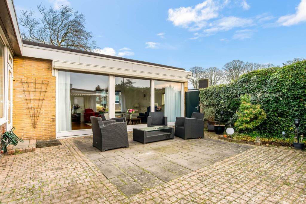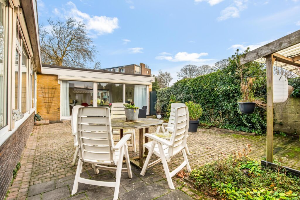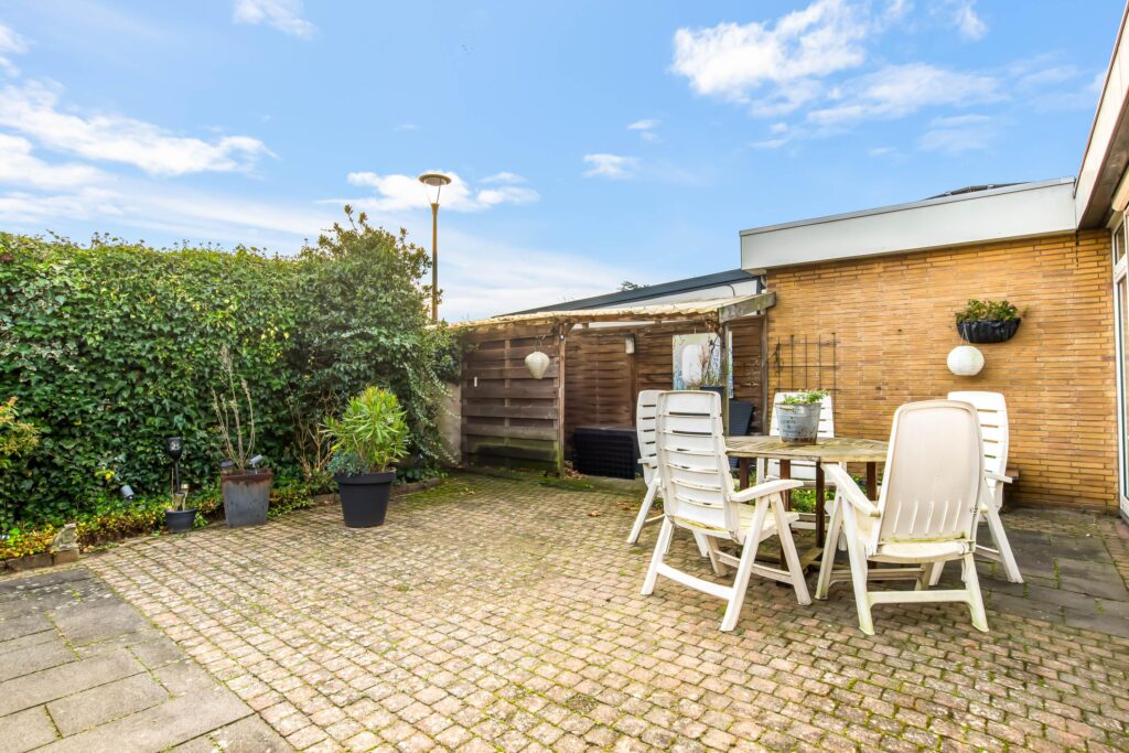 De patio is zonder twijfel één van de grote pluspunten van deze woning: een heerlijke, besloten buitenruimte met veel privacy. Door de zonnige ligging op het zuidoosten is dit de ideale plek om te ontspannen, te genieten van de zon of gezellig te barbecueën met familie en vrienden.
