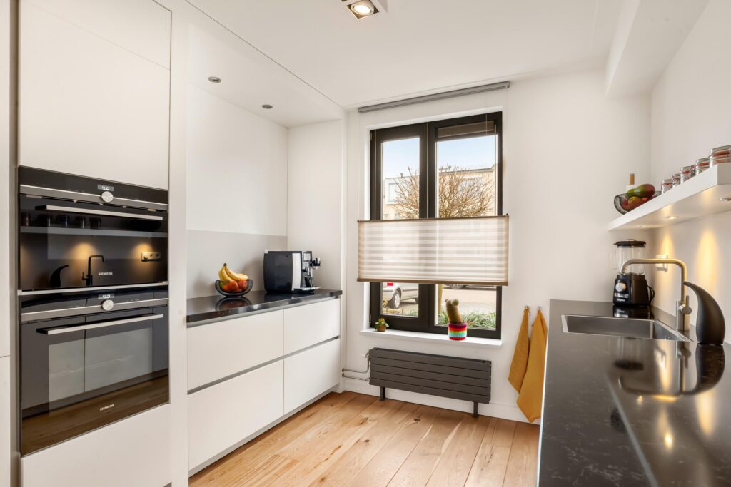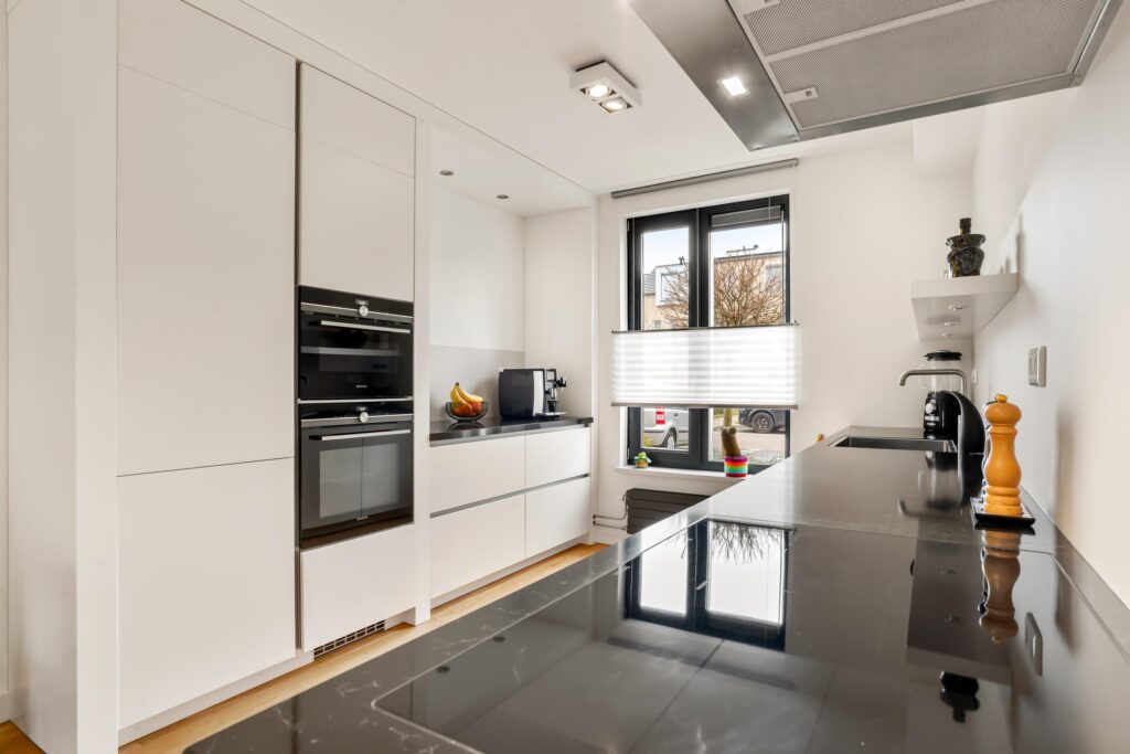 De moderne keuken, vernieuwd in 2023, is aan de voorzijde gesitueerd en uitgevoerd in twee rechte opstellingen. Deze is van alle gemakken voorzien: een inductiekookplaat met 5 zones, vaatwasser, oven, magnetron, koel-vriescombinatie, afzuigkap en luxe composiet aanrechtbladen. Een heerlijke plek voor kookliefhebbers!