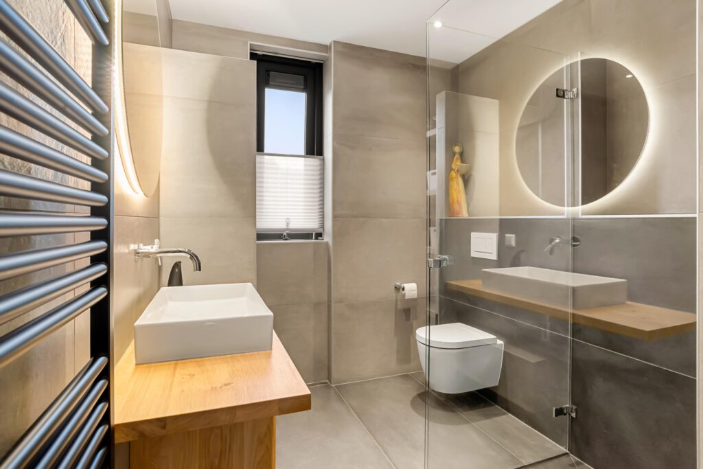 Op de eerste verdieping bevinden zich twee ruime slaapkamers en een luxe badkamer, die in 2024 volledig is vernieuwd. De badkamer is uitgerust met een inloopdouche, wandcloset, wastafelmeubel, elektrische vloerverwarming en mechanische ventilatie – pure verwennerij.