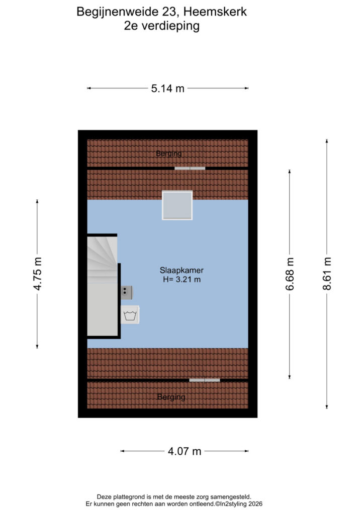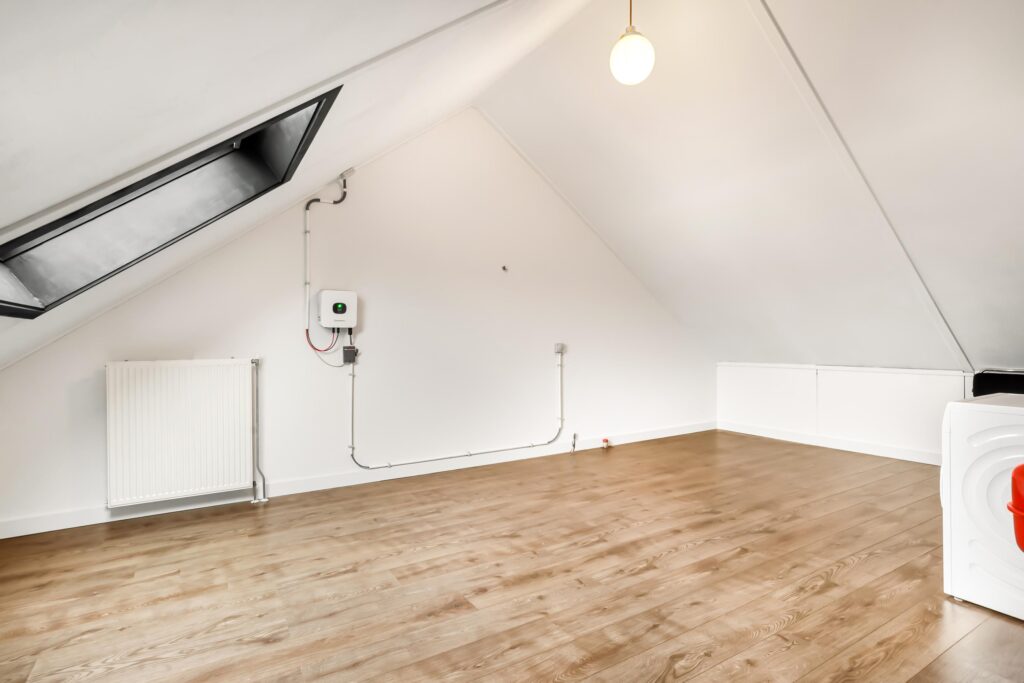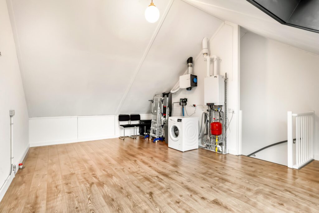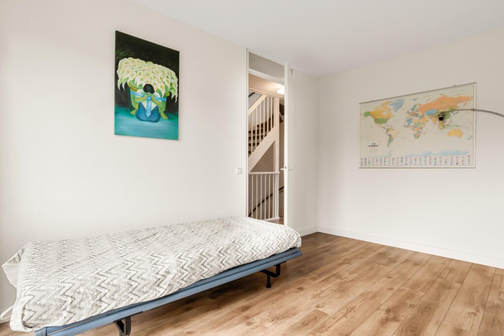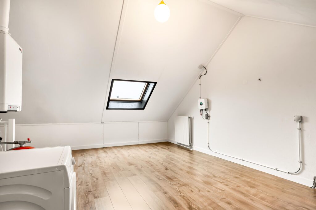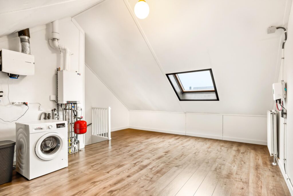 De tweede verdieping biedt momenteel plaats aan de was- en stookruimte met cv-ketel (2021), mechanische ventilatie, omvormer, wasmachine en droger. Daarnaast is dit een veelzijdige ruimte waar eenvoudig één royale slaapkamer kan worden gerealiseerd, of zelfs twee slaapkamers met het plaatsen van een dakkapel.