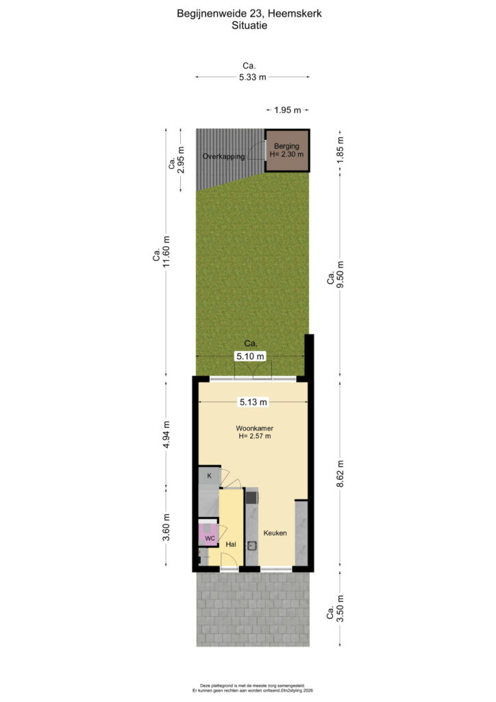 naast de schuur geplaatst