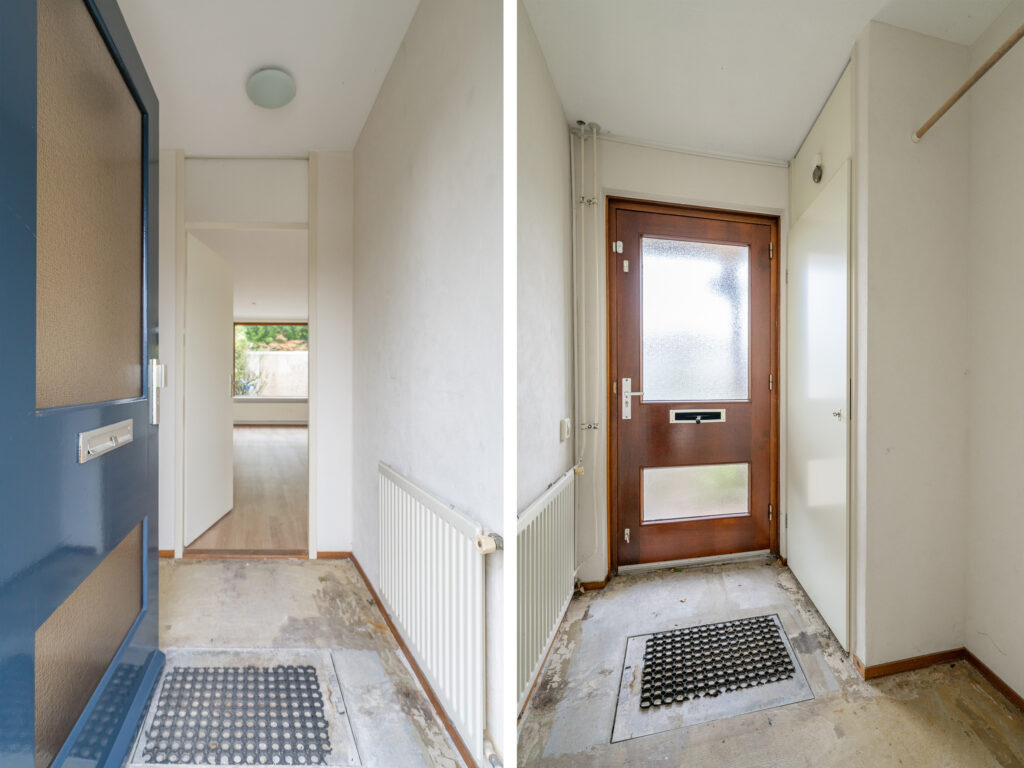 Vanuit de woonkamer komt u in een tussenportaal met de toiletruimte en de trapopgang naar de verdieping.