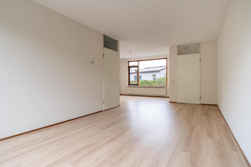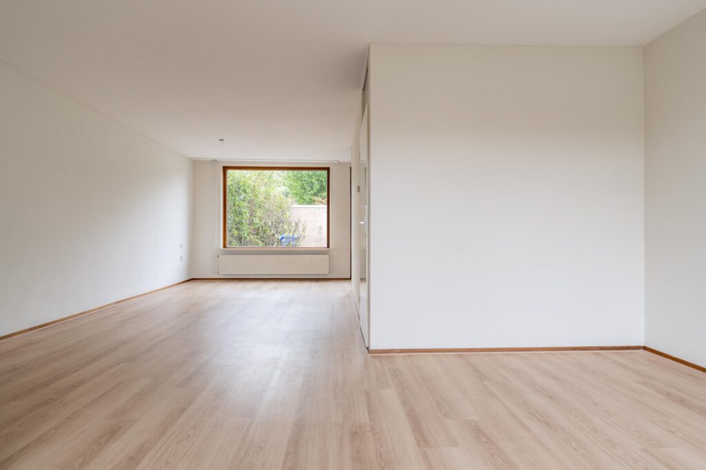Vanuit de hal met meterkast en garderoberuimte, komt u in de lichte, ruime Z-vormige woonkamer (van ca. 32 m2) met een half open, onlangs compleet gerenoveerde keuken.