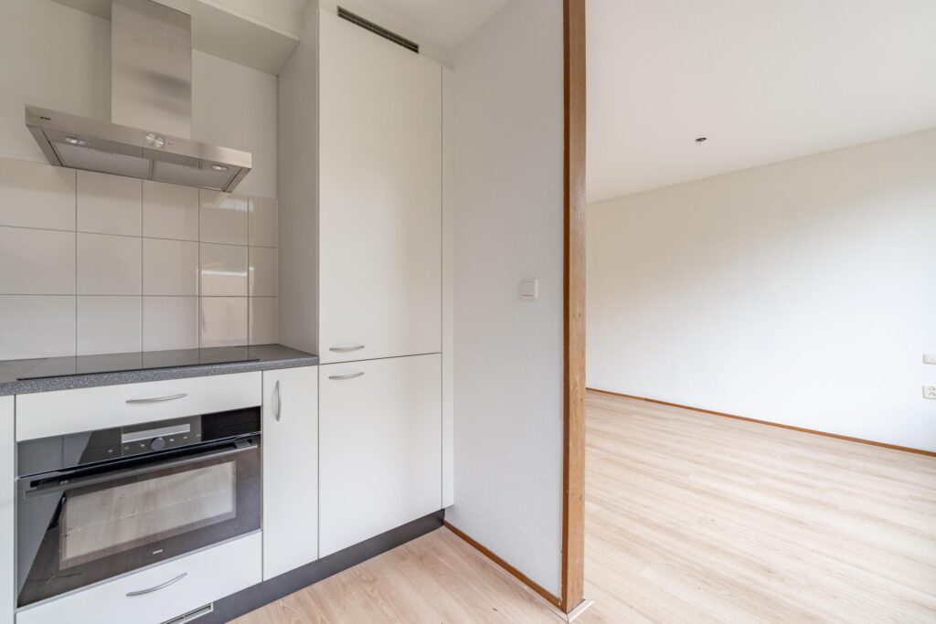De keuken is voorzien van een in september 2025 geplaatste ‘Bruynzeel’ keukeninstallatie in hoekopstelling, voorzien van diverse inbouwapparatuur, te weten: een inductiekookplaat, RVS afzuigkap, combi-magnetron/oven, vaatwasser en koel-/vriescombinatie.