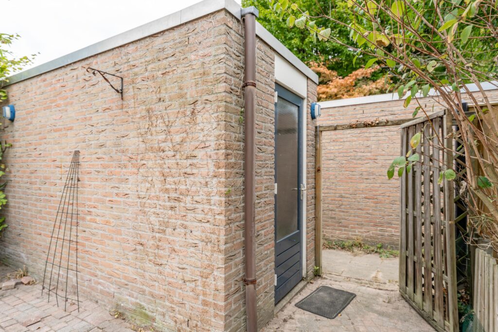 Vanuit de keuken heeft u toegang tot de ca. 12 meter diepe achtertuin op Oost, met een vrije achterom en een stenen berging, geschikt voor o.a. fietsen en tuingereedschap.