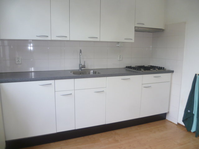 De keuken is voorzien van een moderne, rechte ‘Bruynzeel’ keukeninstallatie met een close-in boiler, RVS gaskookplaat, vlakschermafzuigkap, koelkast en vaatwasser, alsmede de standenschakelaar t.b.v. de mechanische ventilatie.