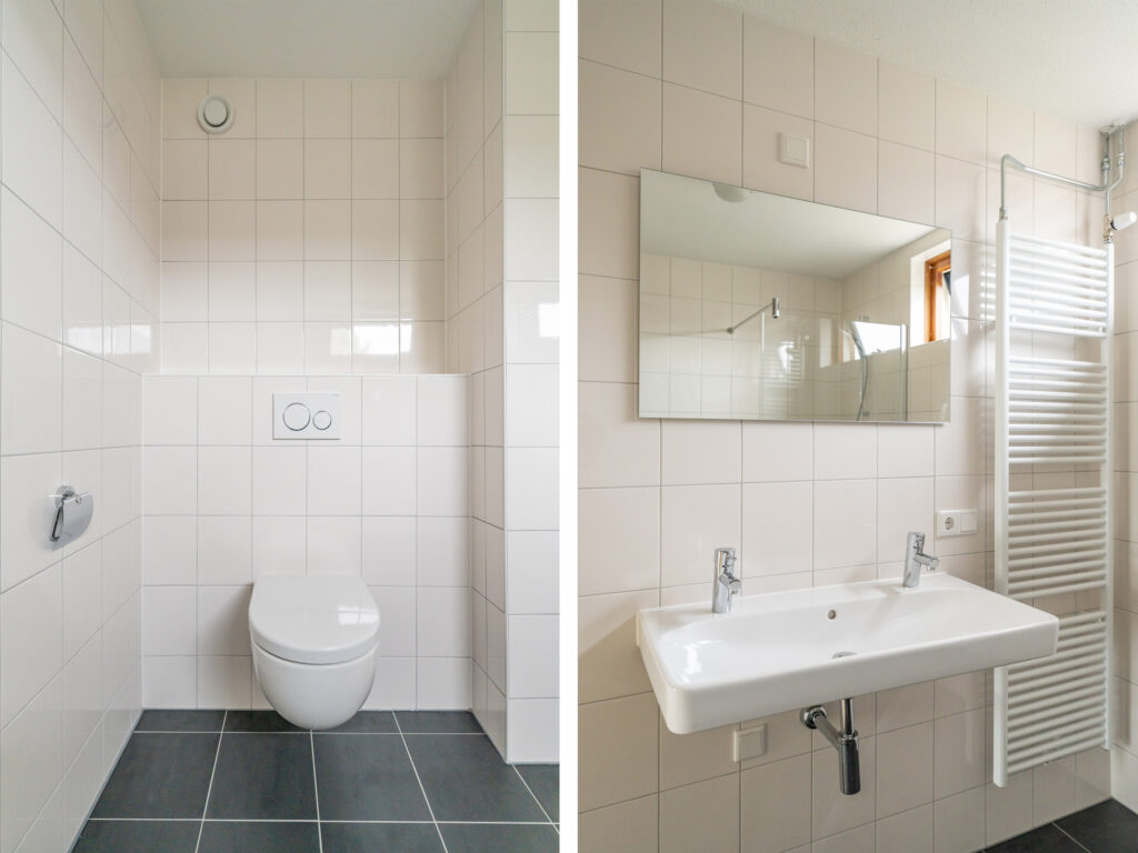 * De nieuwe huurder dient er rekening mee te houden dat er – behoudens de tegelvloeren in toilet en badkamer en in afwijking van de bijgevoegde foto’s – nog GEEN vloerafwerkingen aanwezig zijn.
