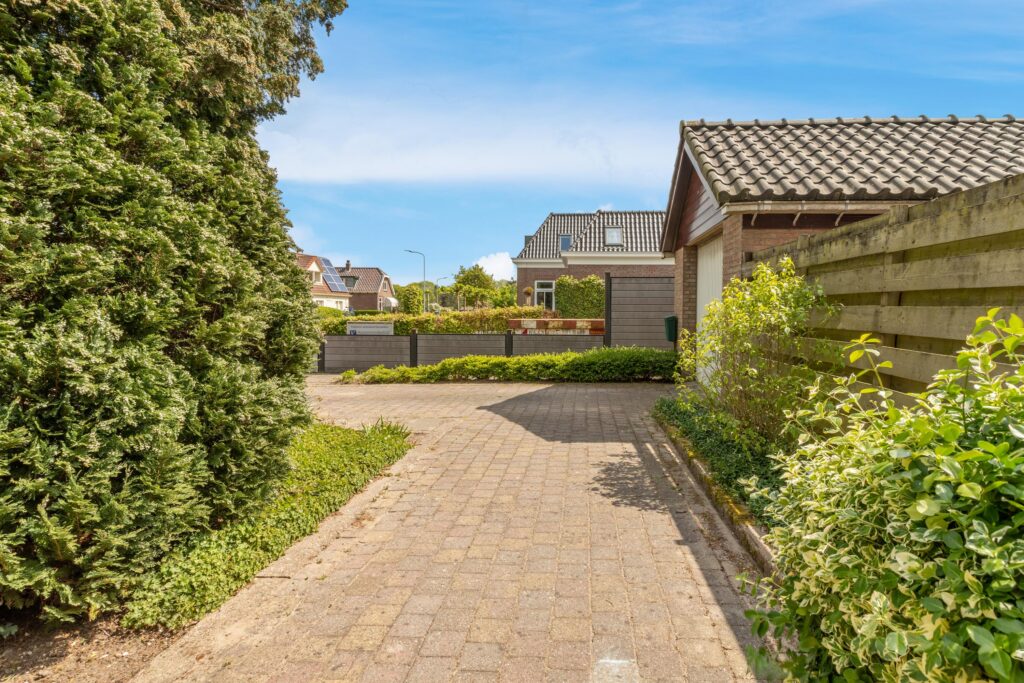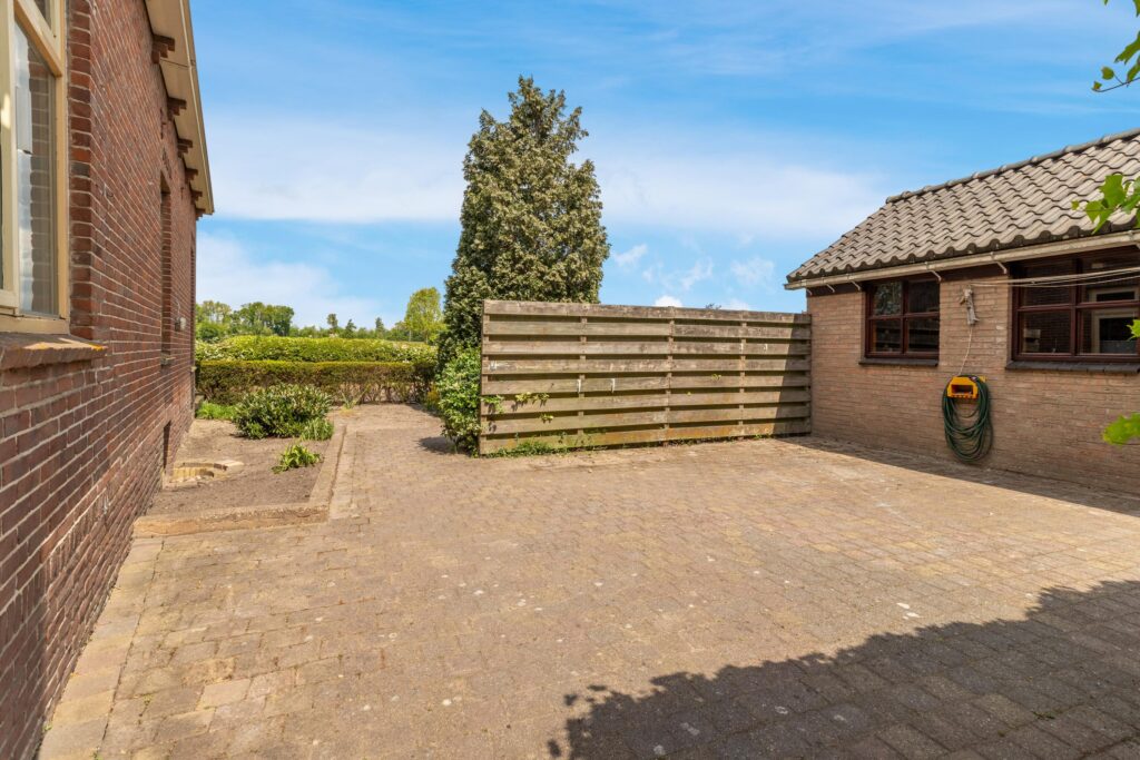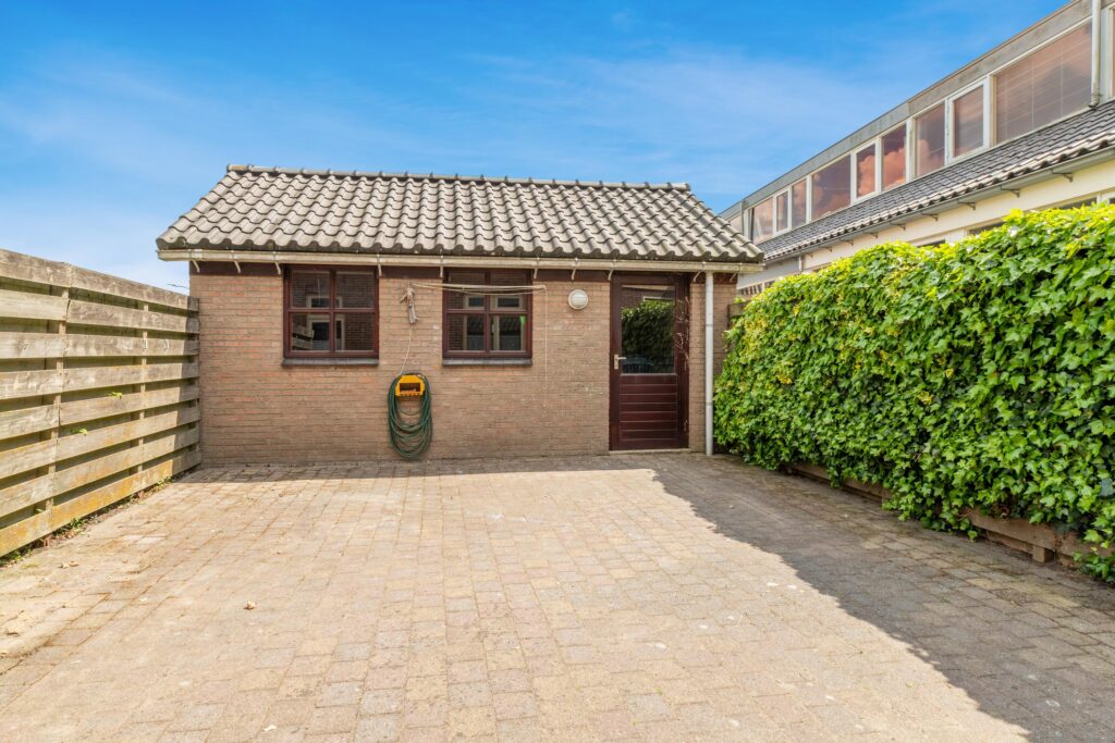Naast de woning ligt een ruime tuin met een ruime stenen garage voorzien van een zadeldak en elektra, ideaal voor het stallen van een auto, fietsen of het realiseren van een werk- of klusruimte. Ook hier geldt: ruimte en mogelijkheden zijn ruimschoots aanwezig.