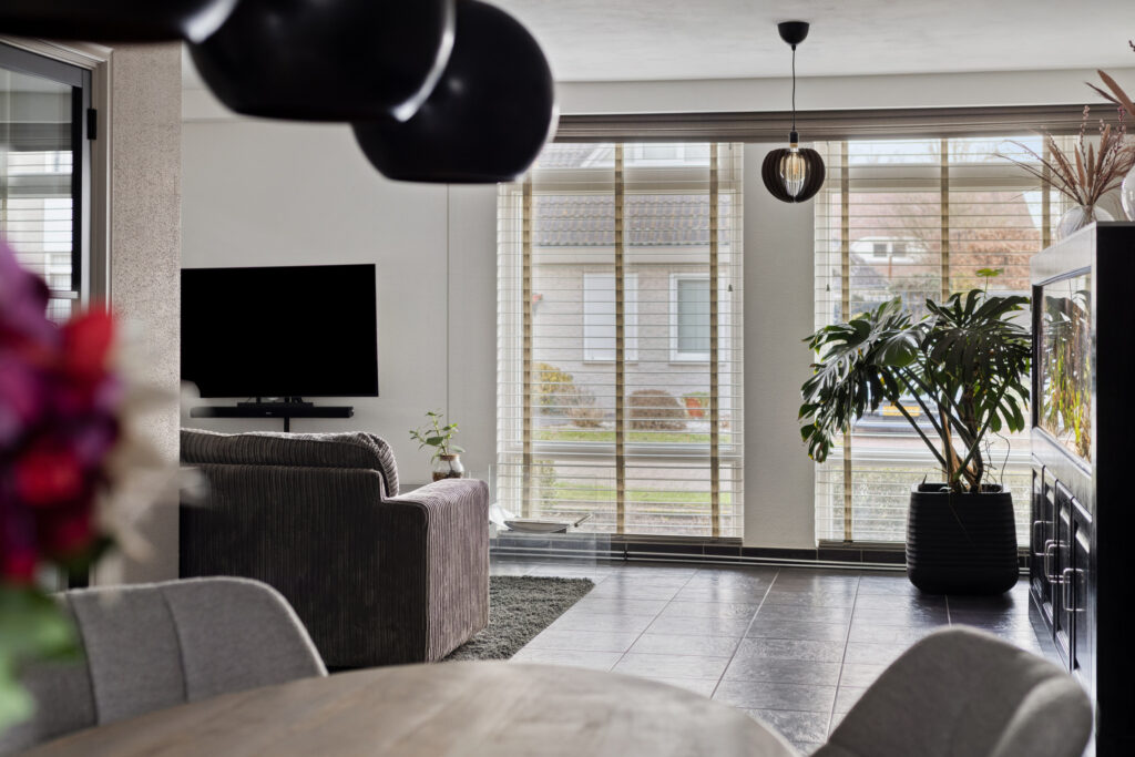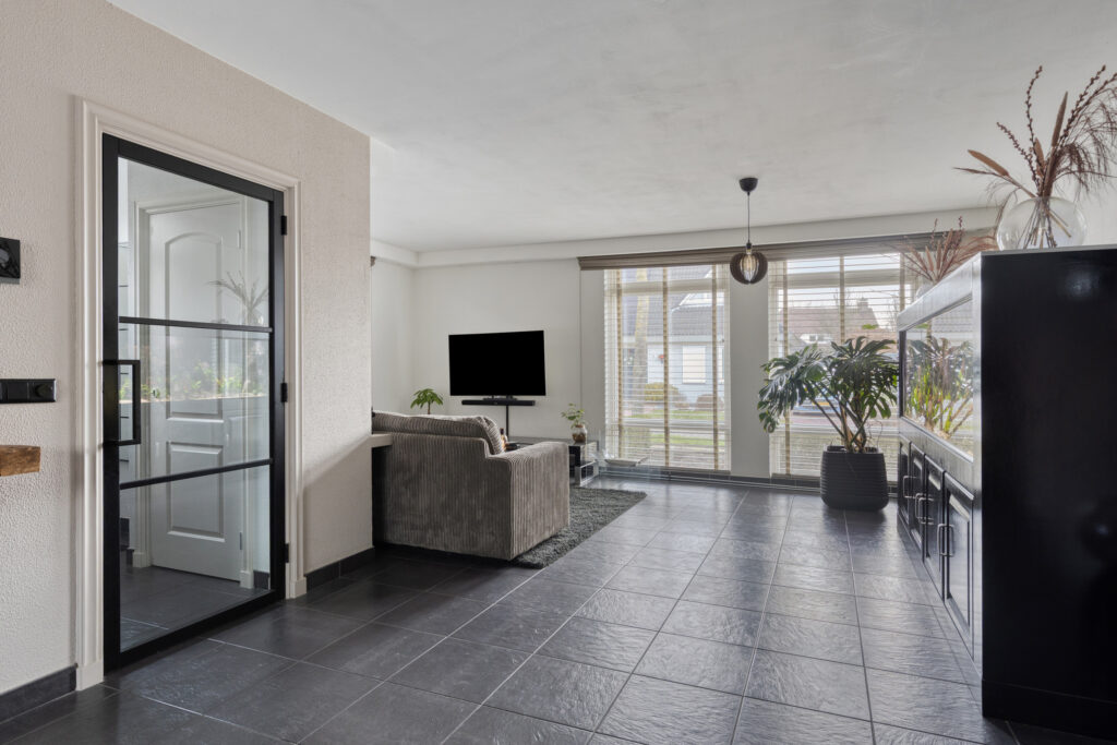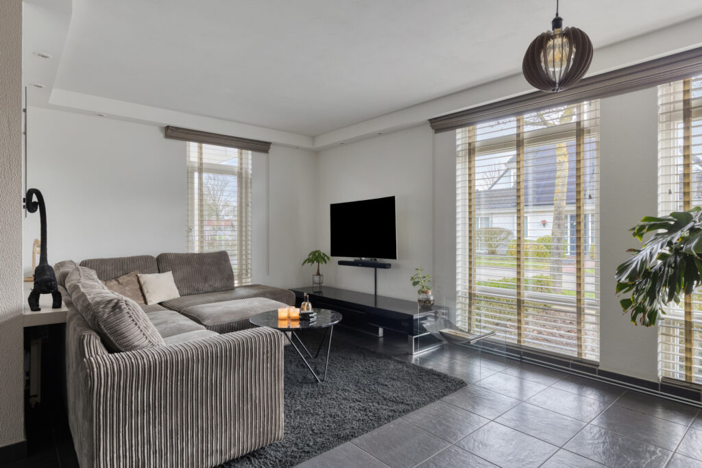 De woonkamer is een fijne leefruimte met veel licht, comfort en een prettige indeling.