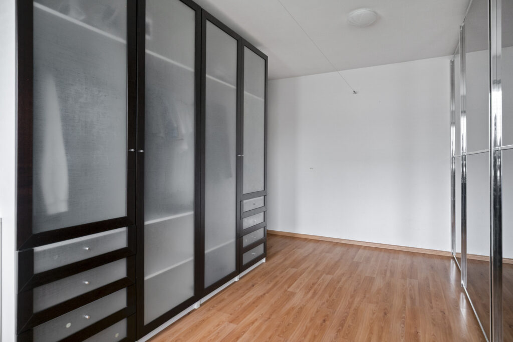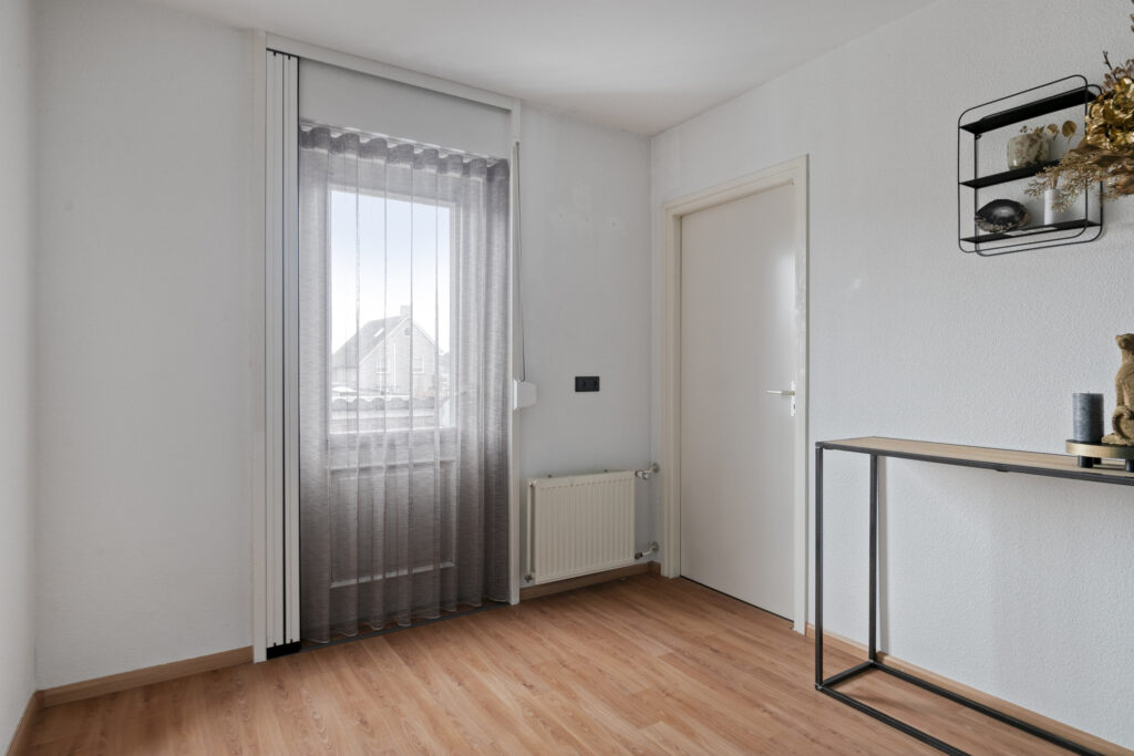 Slaapkamer II: Deze kamer ligt aan de achterzijde van de woning en is op dit moment ingericht als kledingkamer. De kasten op deze kamer blijven in de woning achter. De ruimte heeft een oppervlakte van bijna 16m², dus is zeer royaal van formaat. Ook deze kamer is afgewerkt met een laminaatvloer en is voorzien van een airco unit.