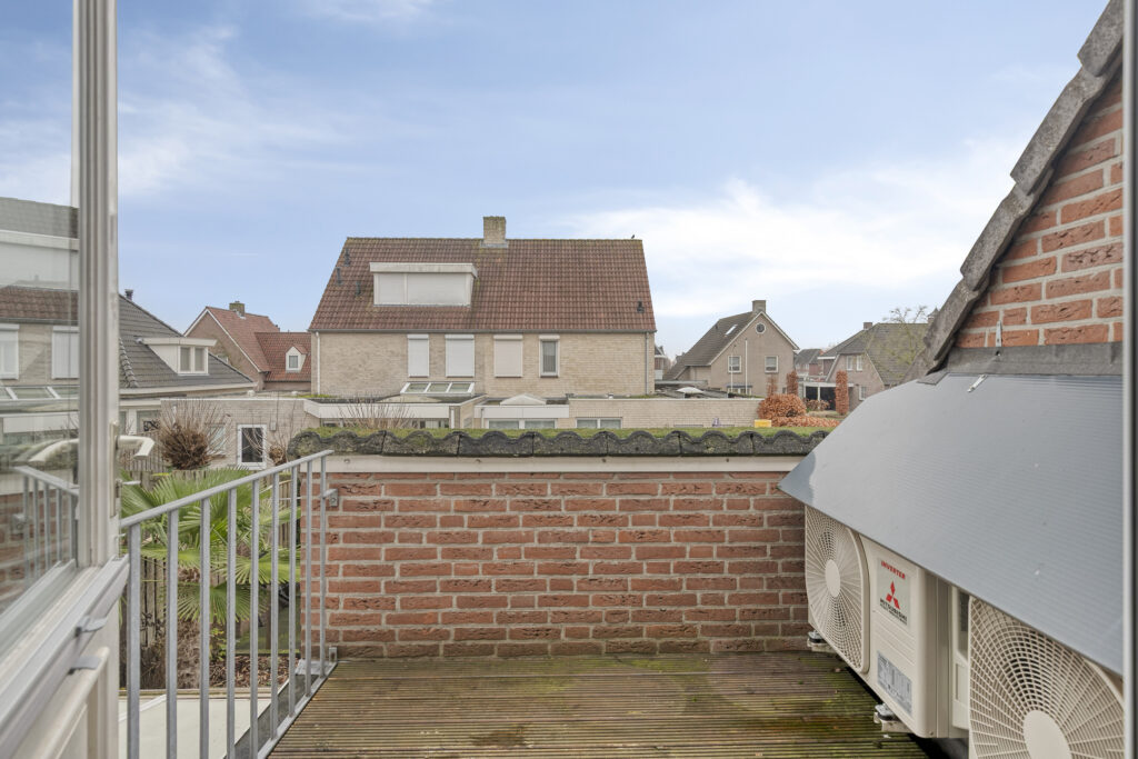 Vanuit deze ruimte is er toegang tot een klein dakterras. Op dit terras zijn de buitenunits van de airconditioning geïnstalleerd.