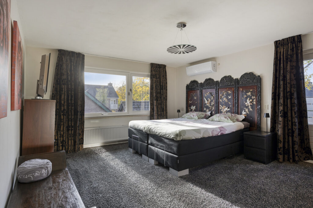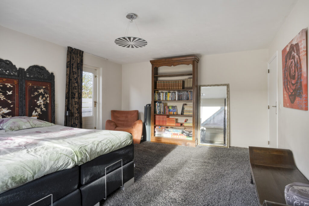 De royale ouderslaapkamer bevindt zich aan de achterzijde van de woning. Dankzij de grote raampartijen geniet deze kamer van een prettige lichtinval. De kamer is ruim van opzet (maar liefst 22m²) en biedt daardoor voldoende plaats voor een groot tweepersoonsbed, kastenwand en eventueel een extra zit- of werkhoek.