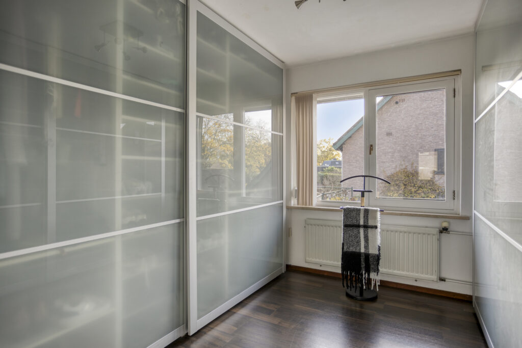 De derde slaapkamer (ruim 10m²) is momenteel ingericht als kastenkamer met aan weerszijden grote schuifkasten. Deze praktische en overzichtelijke ruimte is perfect voor wie behoefte heeft aan extra opbergruimte of een inloopkast. Uiteraard kan de kamer ook eenvoudig als slaap- of werkkamer worden gebruikt.