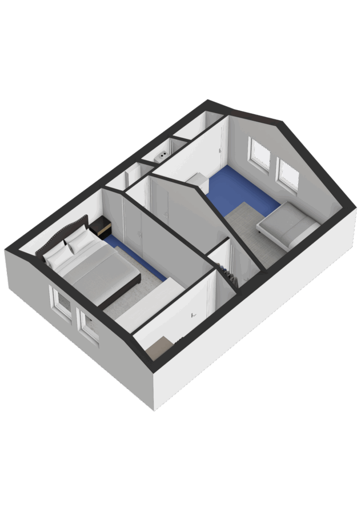 Overloop met toegang tot de 2 ruime slaapkamers en toilet.