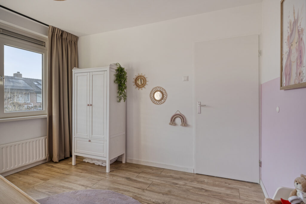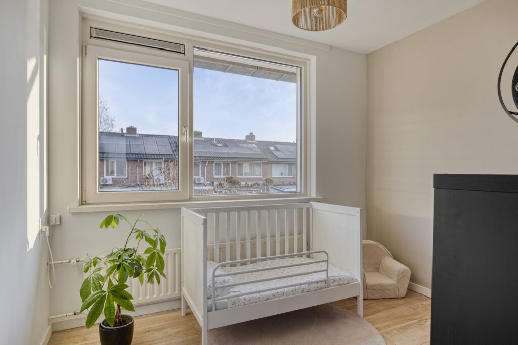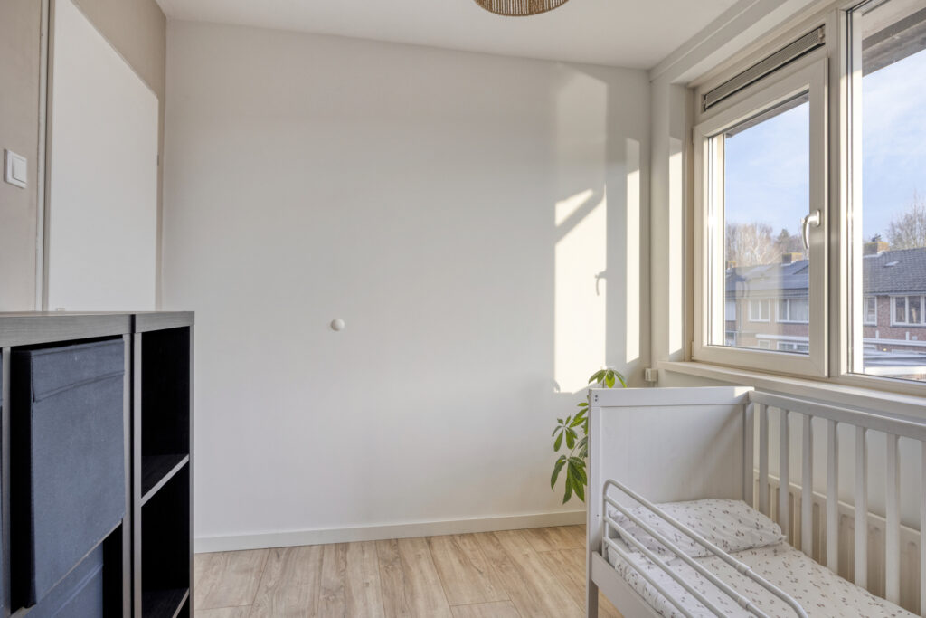 De 3 ruime slaapkamers zijn allen voorzien van laminaatvloeren en kunststof kozijnen met draai-/kiepramen en rolluiken, waarvan die op de achterkamers elektrisch bedienbaar.