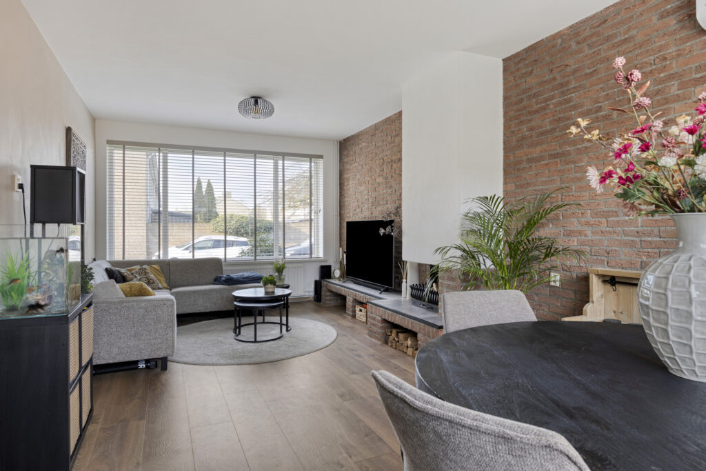Vanuit de keuken heeft u vervolgens toegang tot de sfeervolle, lichte doorzon-woonkamer, met grote kunststof raampartijen aan zowel de voor- als achterzijde, welke zorgen voor veel directe daglichttoetreding. Deze woonkamer is voorzien van een laminaatvloer over de houten vloer, een sfeervolle open haard met een betegeld plateau, de glasvezelaansluiting en een in 2022 geplaatste airco, die zowel kan koelen als verwarmen.