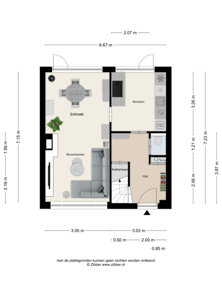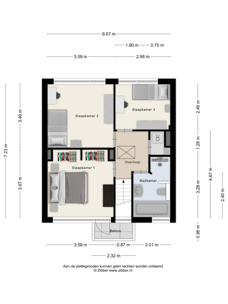 • In de ingemeten woonoppervlakte van 96 m² is de zolder (van 12 m² binnen de + 1.50 meterlijn) NIET inbegrepen.