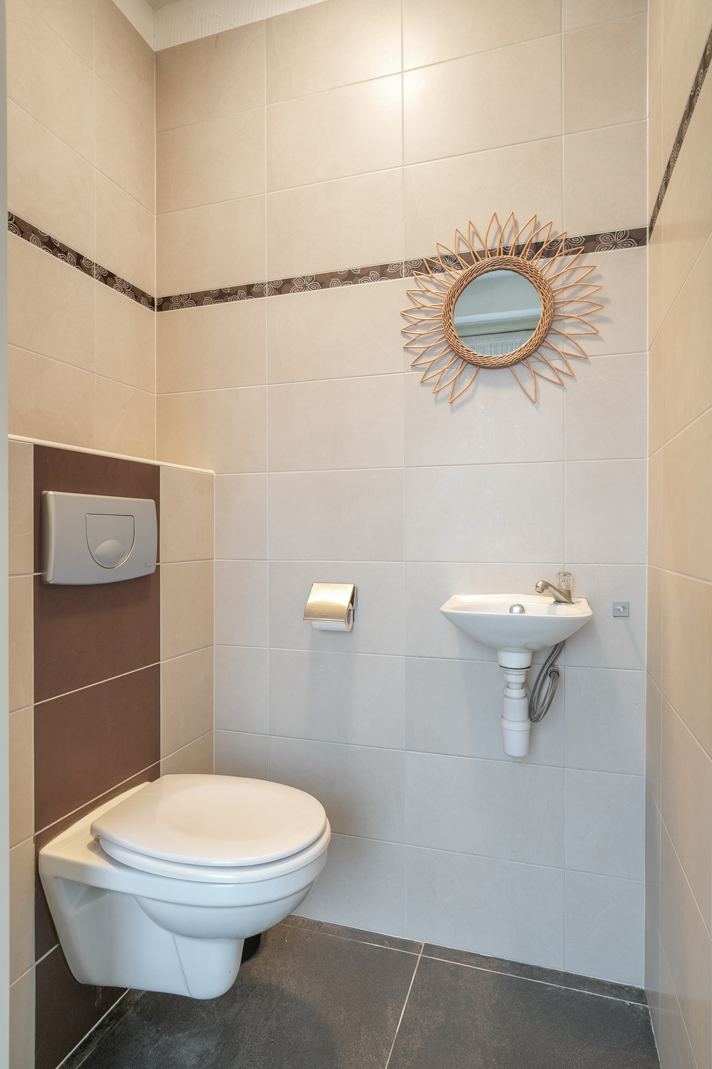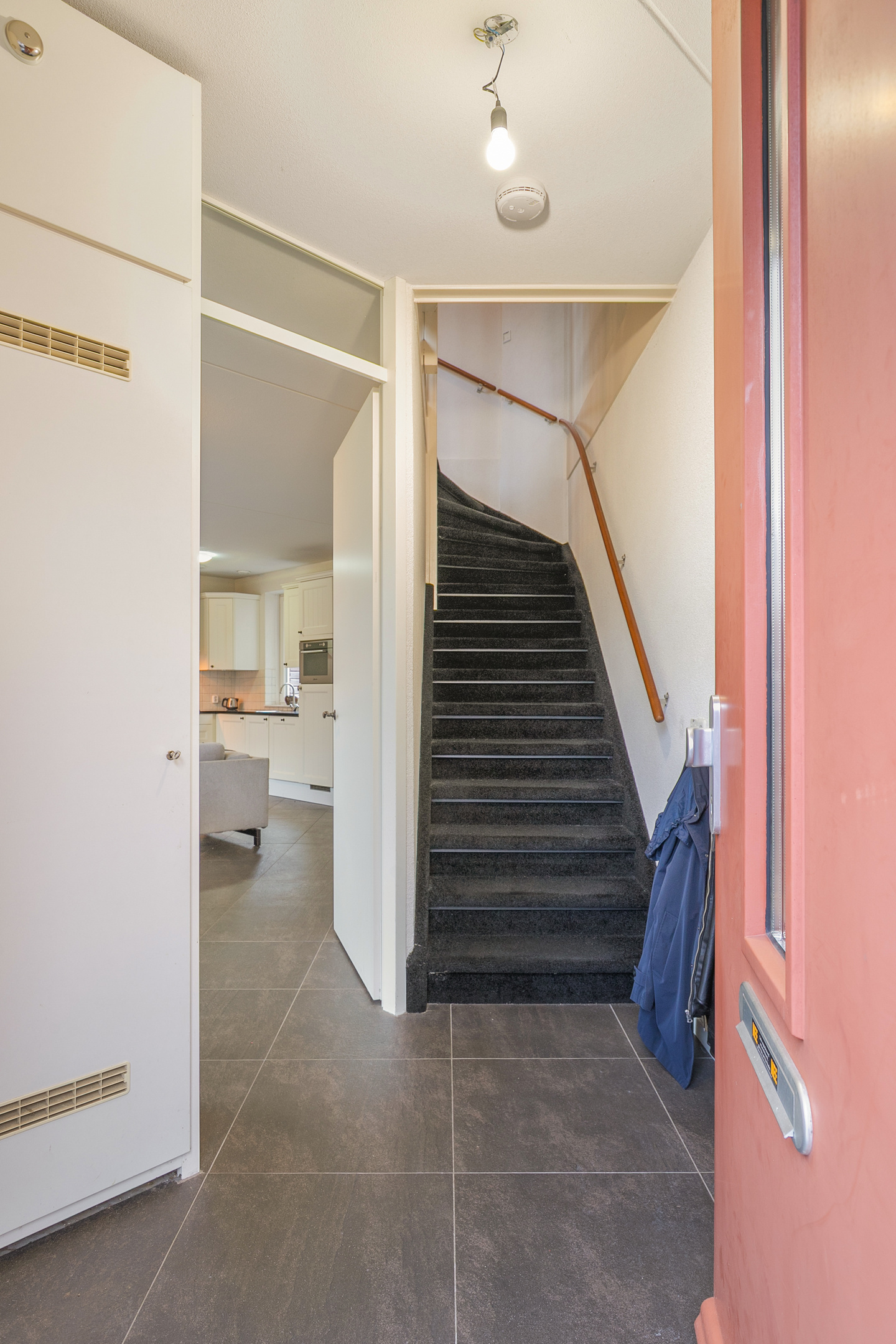 Praktisch achterportaal met deur naar de tuin alsmede toegang tot de toiletruimte