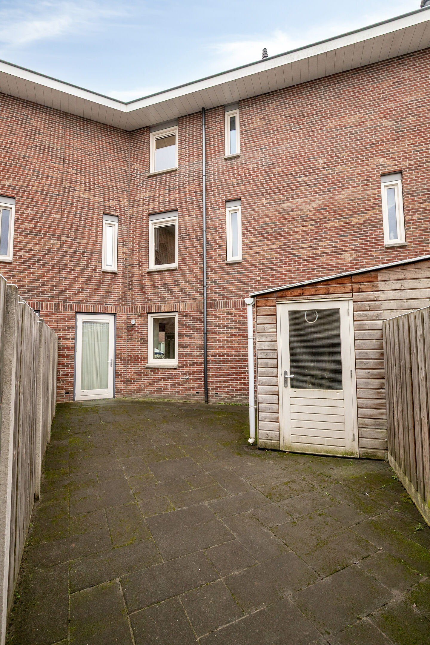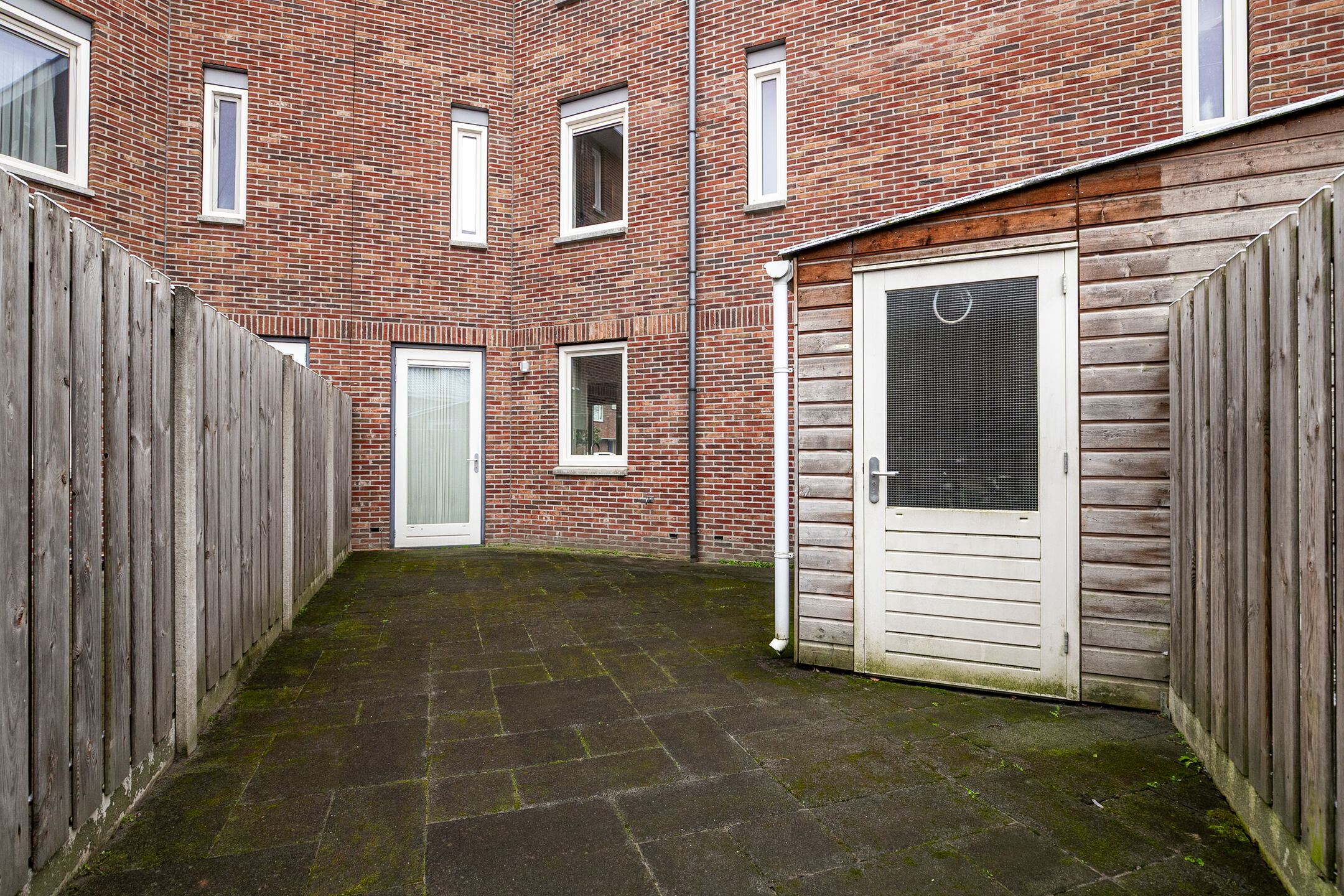 Onderhoudsvriendelijke stadstuin met achterom naar het afgesloten binnenterrein en eigen parkeerplaats.