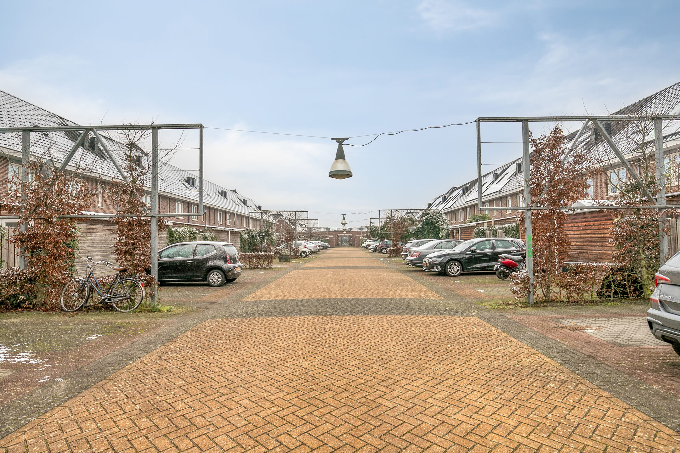 Eigen parkeerplaats gelegen op het afgesloten binnenterrein, vrijwel direct grenzend aan de achterom van de woning.