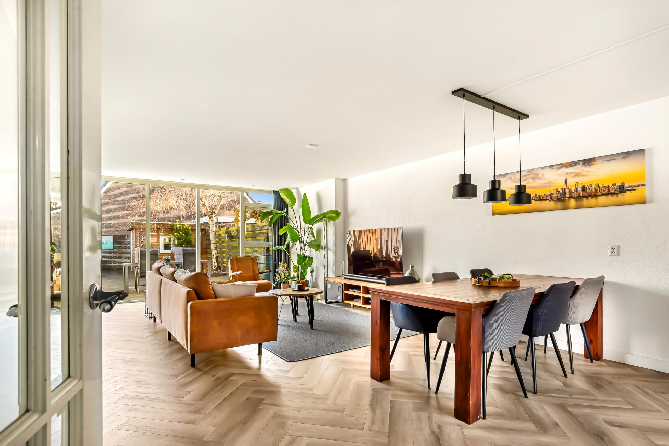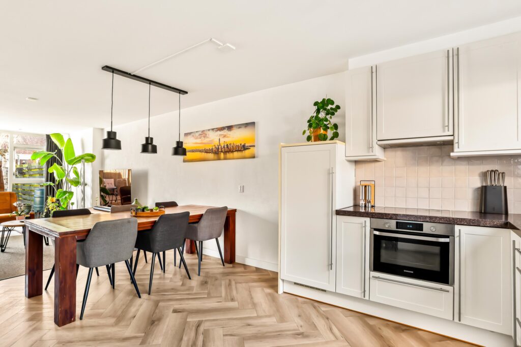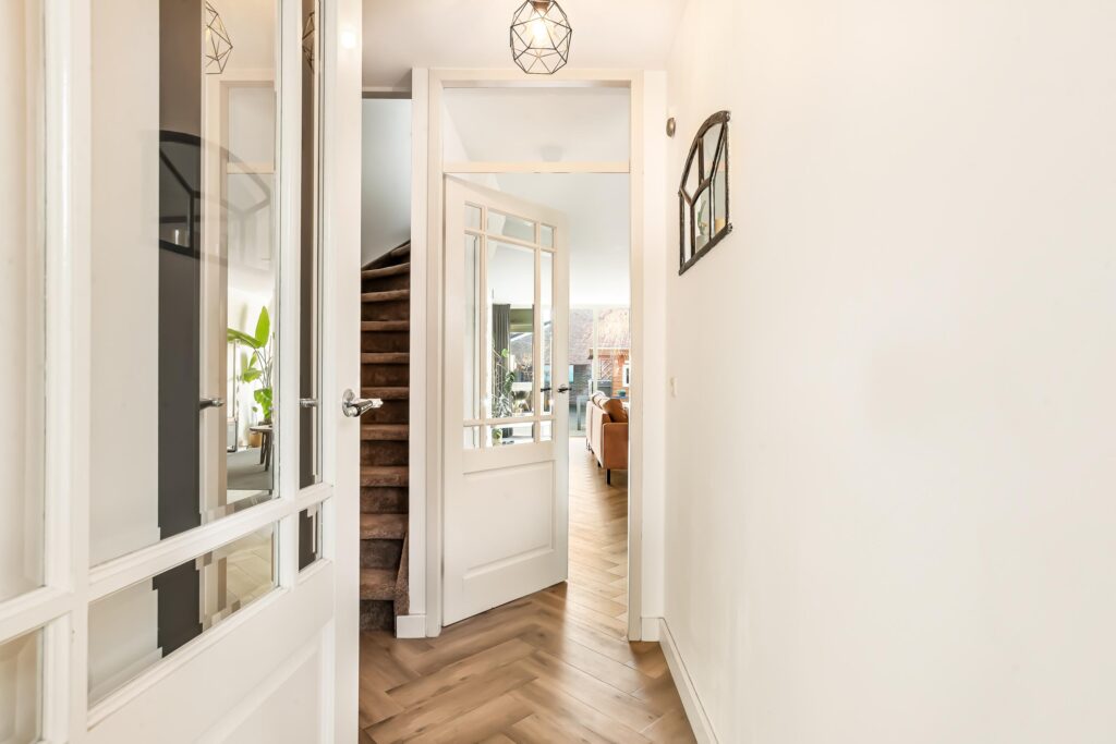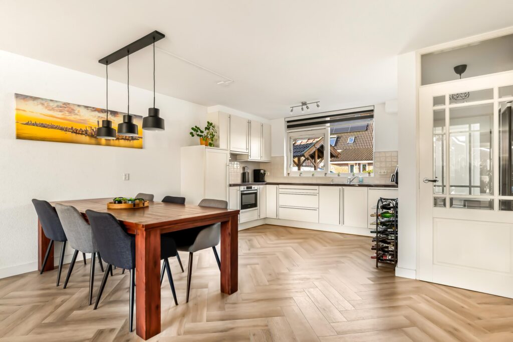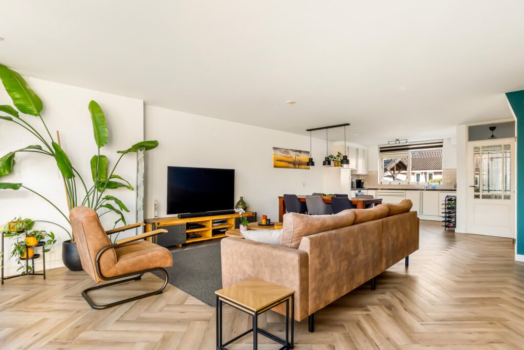 De gehele begane grond is afgewerkt met een pvc-vloer in stijlvol visgraatmotief en voorzien van vloerverwarming, wat zorgt voor optimaal wooncomfort.