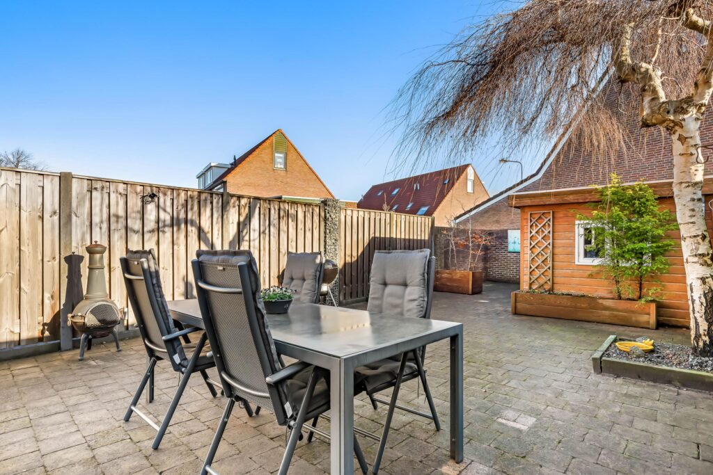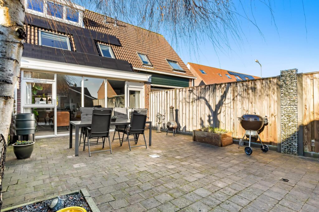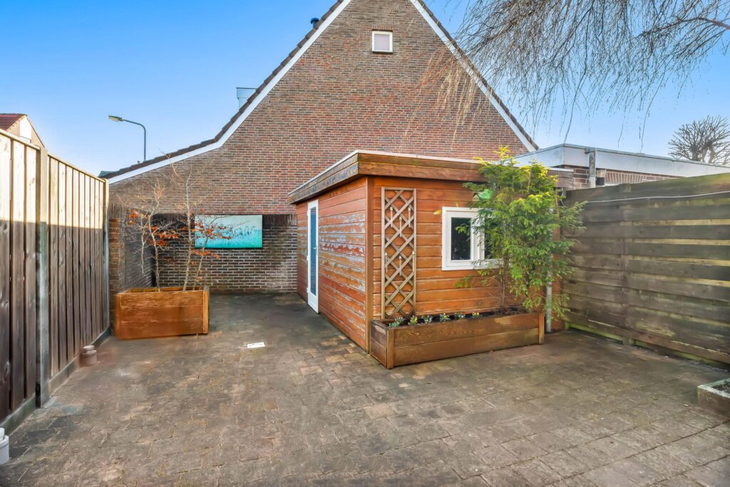 De zonnige achtertuin is gelegen op het zuidoosten, grotendeels bestraat en biedt volop mogelijkheden om meerdere gezellige zitjes te creëren. De tuin heeft zeer beperkte inkijk en achterin de tuin staat een ruime houten berging, ideaal voor fietsen, gereedschap en tuinmeubilair. Vanuit de berging kunt u de steeg bereiken.