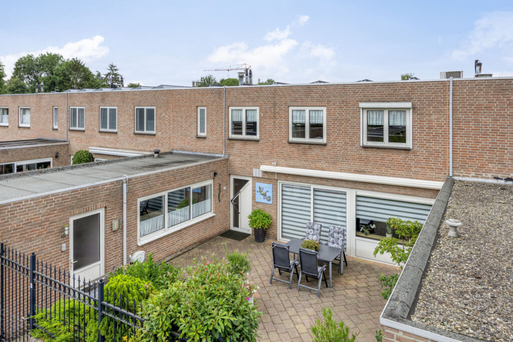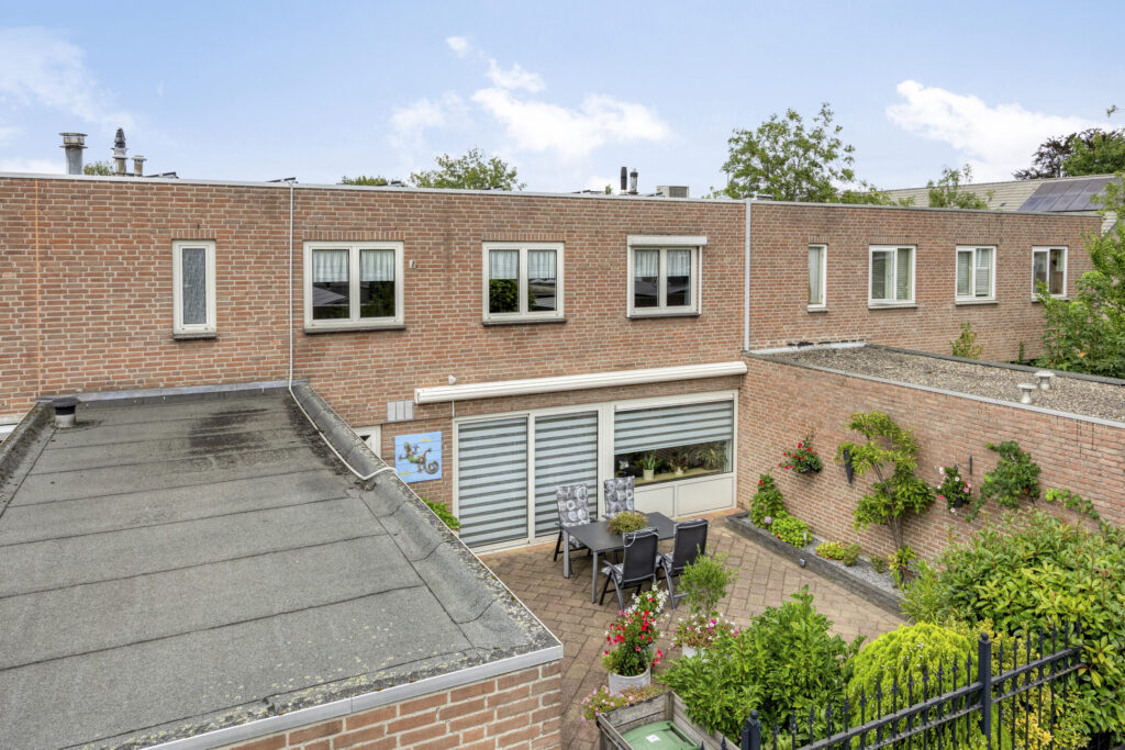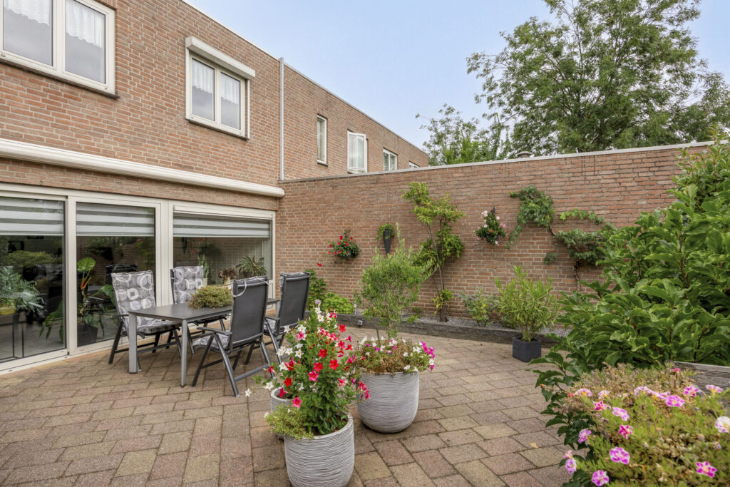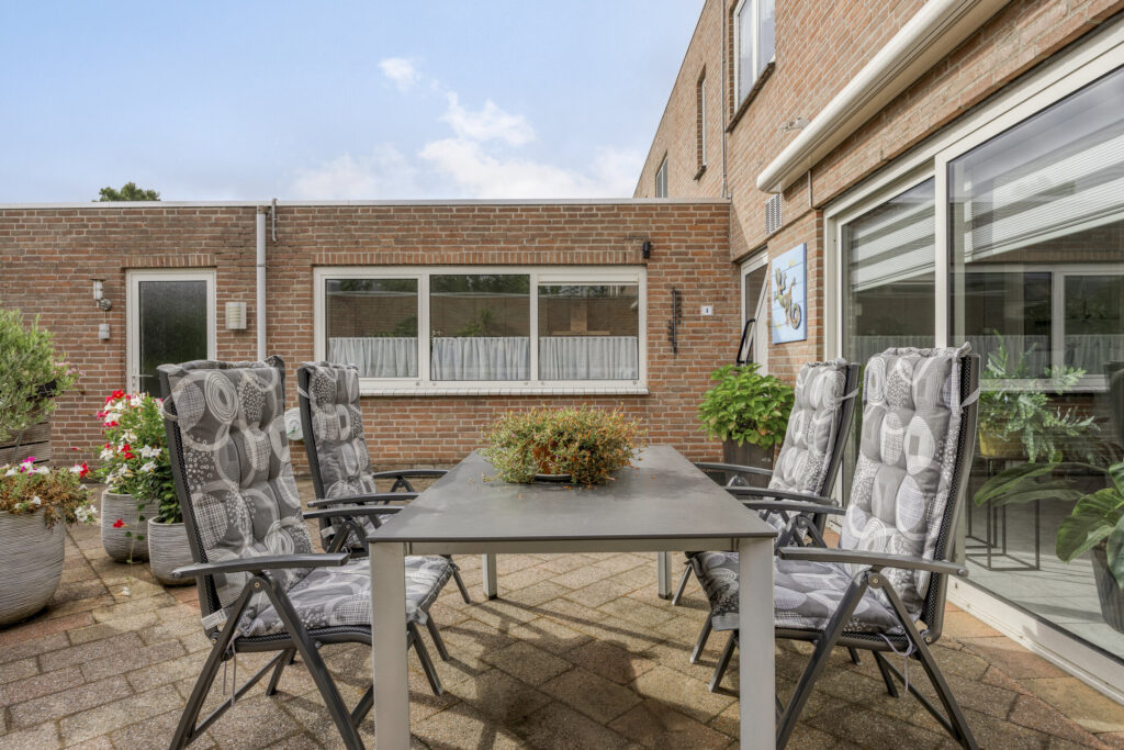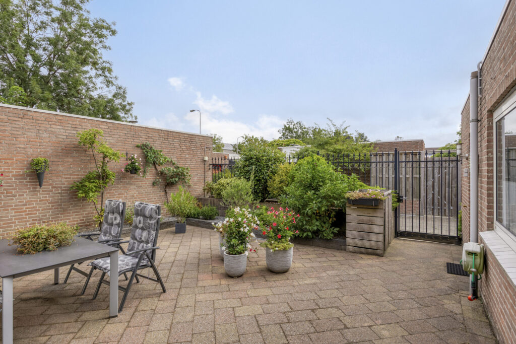 De patiotuin is een oase van rust. Een fijne plek om te ontspannen met een koffie of lekker te eten in de zon. Er is een groot elektrisch bedienbaar zonnescherm waardoor je heerlijk beschut kan zitten. De tuin is onderhoudsarm aangelegd met een flink terras, borders en struiken.