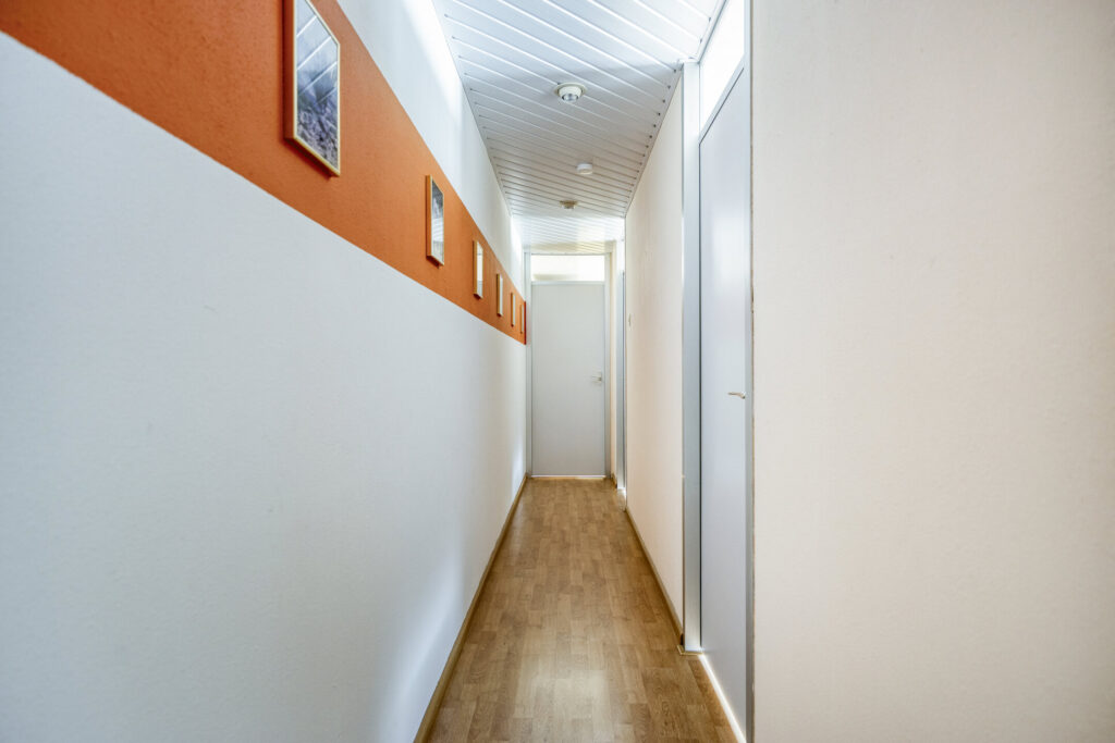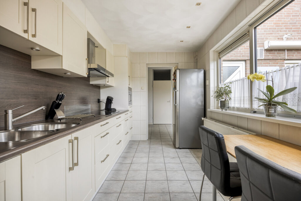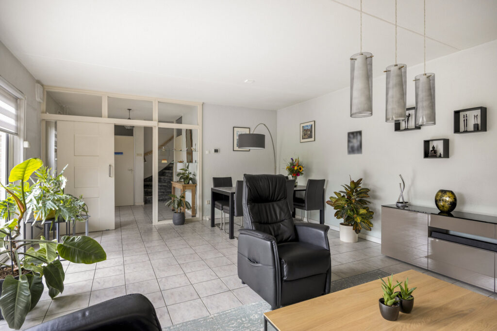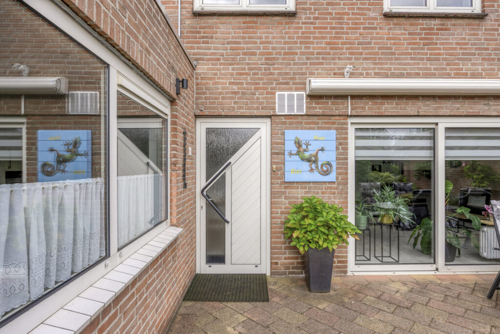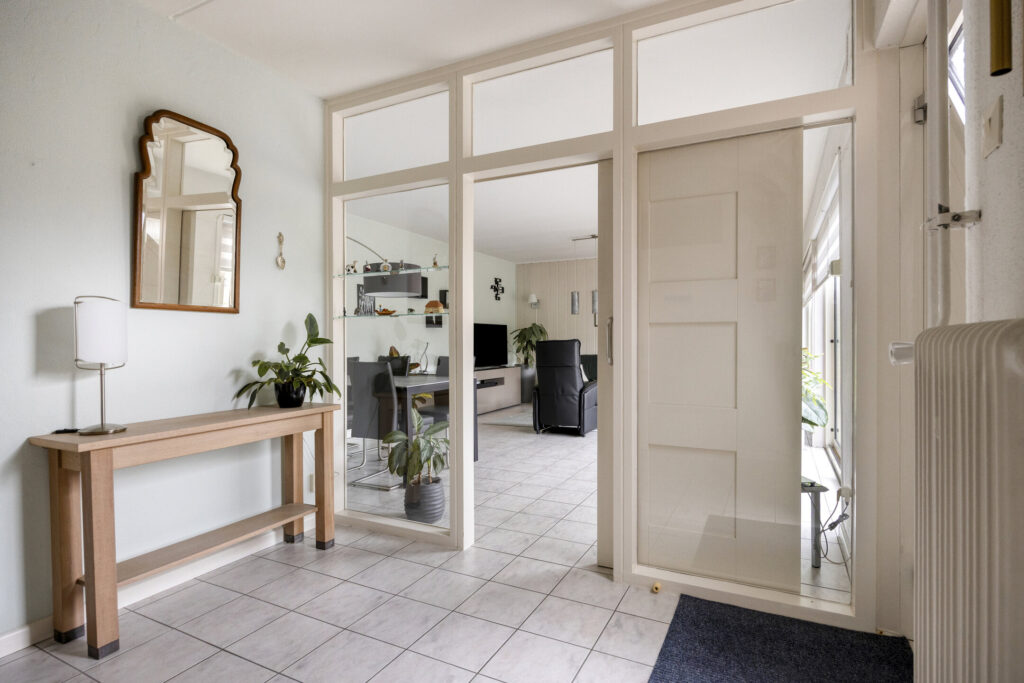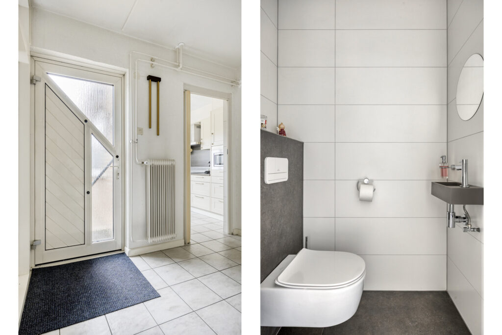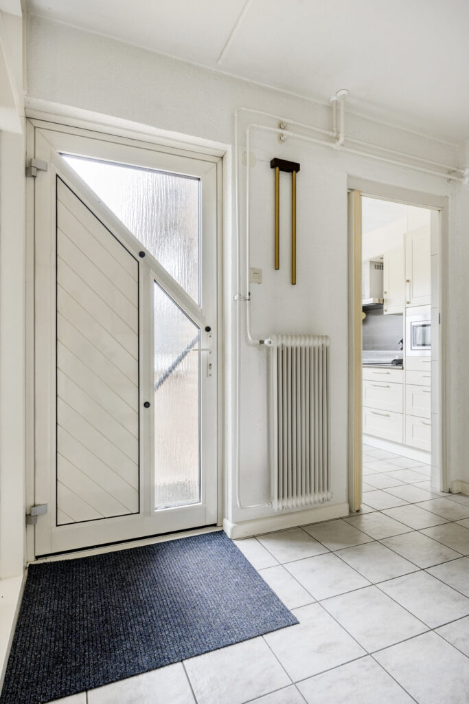 Via een keurige spijlen poort met voordeurbel kom je in de verzorgde patiotuin met toegang tot de voordeur. En je voelt het gelijk: dit huis is met liefde onderhouden. Na de voordeur is er een ruime ontvangsthal met lichte tegels. Direct aan de hal vind je een nette berging annex garderoberuimte waar ook de HR CV ketel hangt plus een verzorgd gemoderniseerd toilet (hangcloset met fontein) én de glazen pui met toegang tot de woonkamer. De woonkamer is ongeveer 31 m2 groot en door de grote schuifpui is er een optimaal binnen/buiten gevoel en een zee van licht. De dichte keuken is ruim 12 m2 groot en heeft een praktische indeling met aan een wand een enorm aanrechtblad met dubbele spoelbak, inductie kookplaat, afzuigkap, magnetron oven, en veel kast en lade ruimte. Aansluitend is de berging/bijkeuken met onder meer de aansluiting voor de wasmachine.