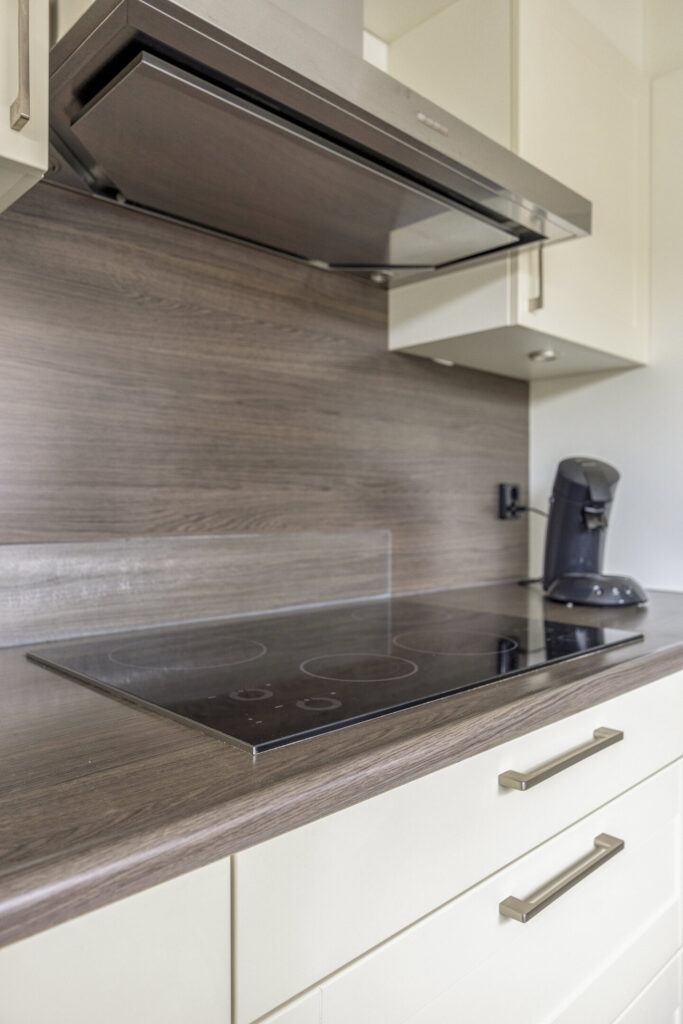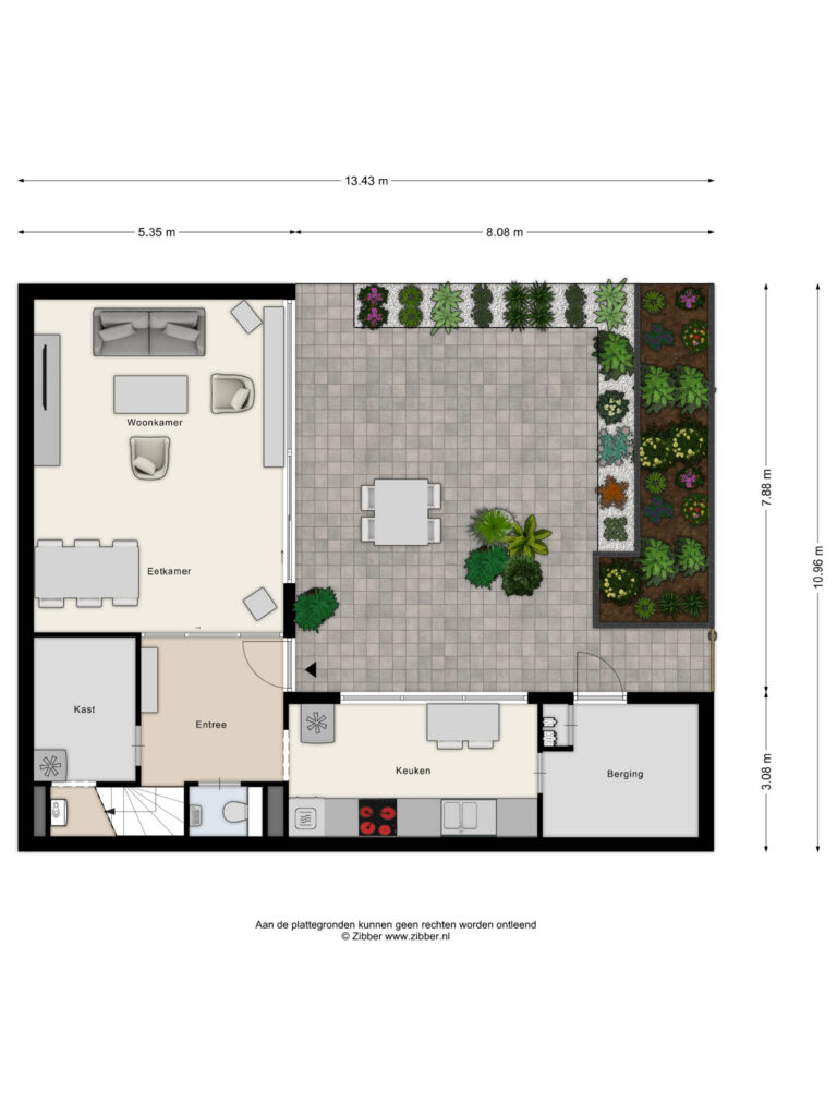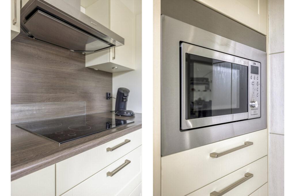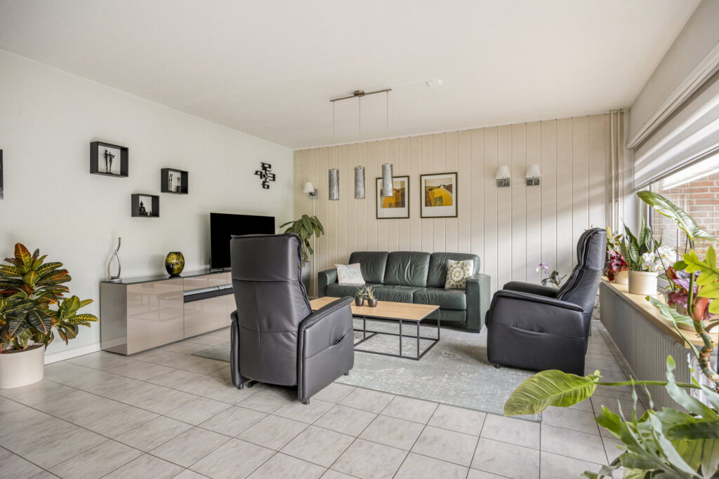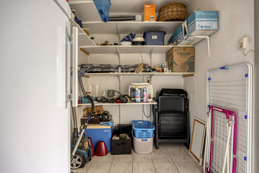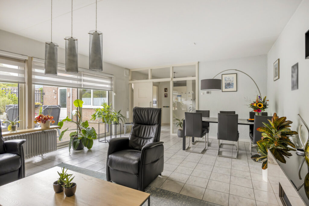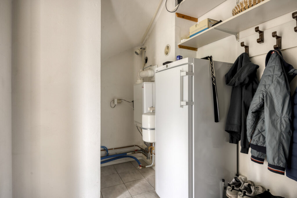 Via een keurige spijlen poort met voordeurbel kom je in de verzorgde patiotuin met toegang tot de voordeur. En je voelt het gelijk: dit huis is met liefde onderhouden. Na de voordeur is er een ruime ontvangsthal met lichte tegels. Direct aan de hal vind je een nette berging annex garderoberuimte waar ook de HR CV ketel hangt plus een verzorgd gemoderniseerd toilet (hangcloset met fontein) én de glazen pui met toegang tot de woonkamer. De woonkamer is ongeveer 31 m2 groot en door de grote schuifpui is er een optimaal binnen/buiten gevoel en een zee van licht. De dichte keuken is ruim 12 m2 groot en heeft een praktische indeling met aan een wand een enorm aanrechtblad met dubbele spoelbak, inductie kookplaat, afzuigkap, magnetron oven, en veel kast en lade ruimte. Aansluitend is de berging/bijkeuken met onder meer de aansluiting voor de wasmachine.