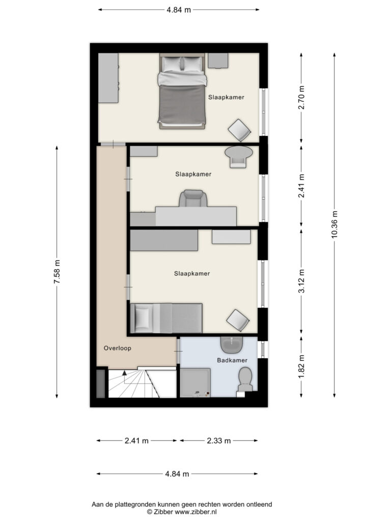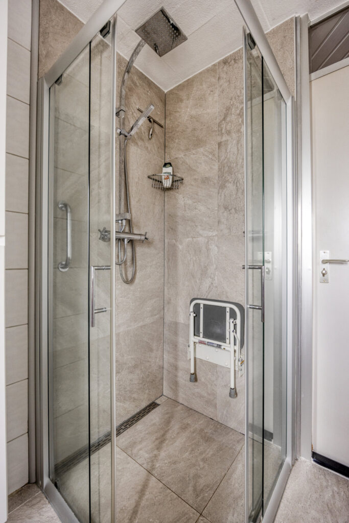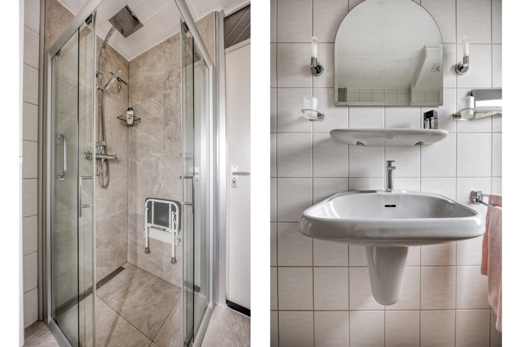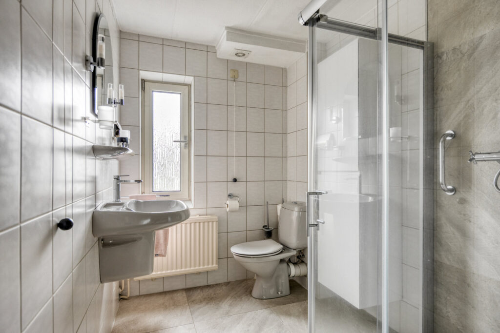 Op de eerste verdieping vind je drie grote slaapkamers. Licht, rust en ruimte kenmerken deze kamers – ook ideaal voor een thuiskantoor of een hobbyruimte. De badkamer is compleet uitgerust met een tweede toilet, douchecabine, wastafelmeubel en natuurlijke ventilatie dankzij het raam.