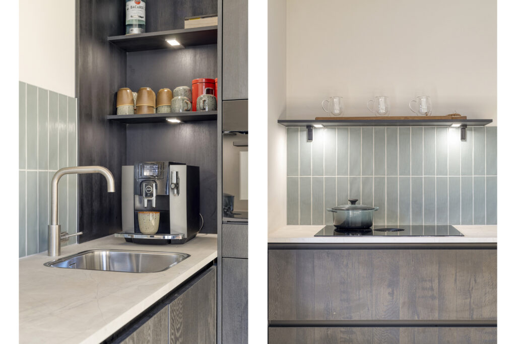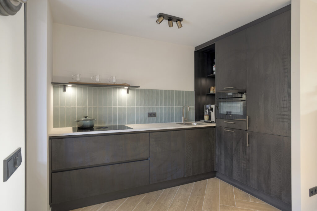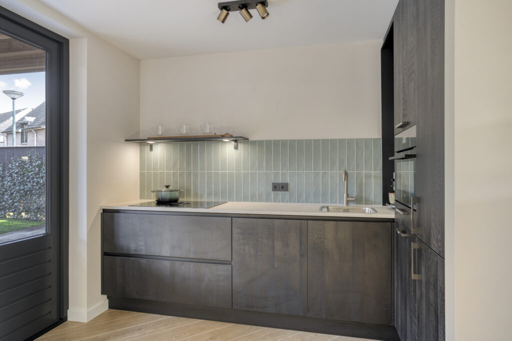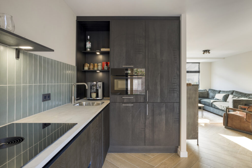 De luxe keuken (2025) beschikt over alle gemakken! Zo is deze uitgevoerd met een inductiekookplaat met geïntegreerde afzuigunit (Bora), vaatwasser, koelkast en vrieskast en een combi-oven. De diverse kasten zorgen voor bergruimte in de keuken.