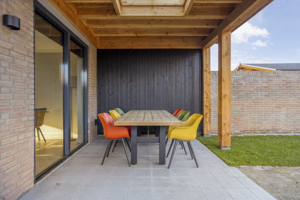 Vanuit de keuken is het overdekte terras bereikbaar.