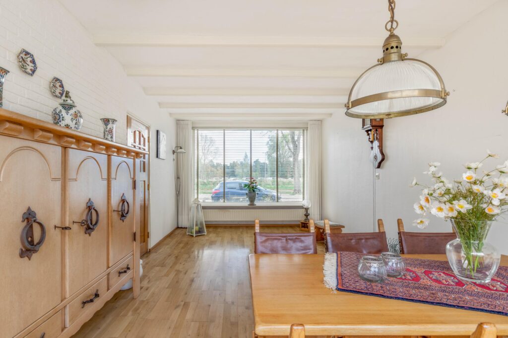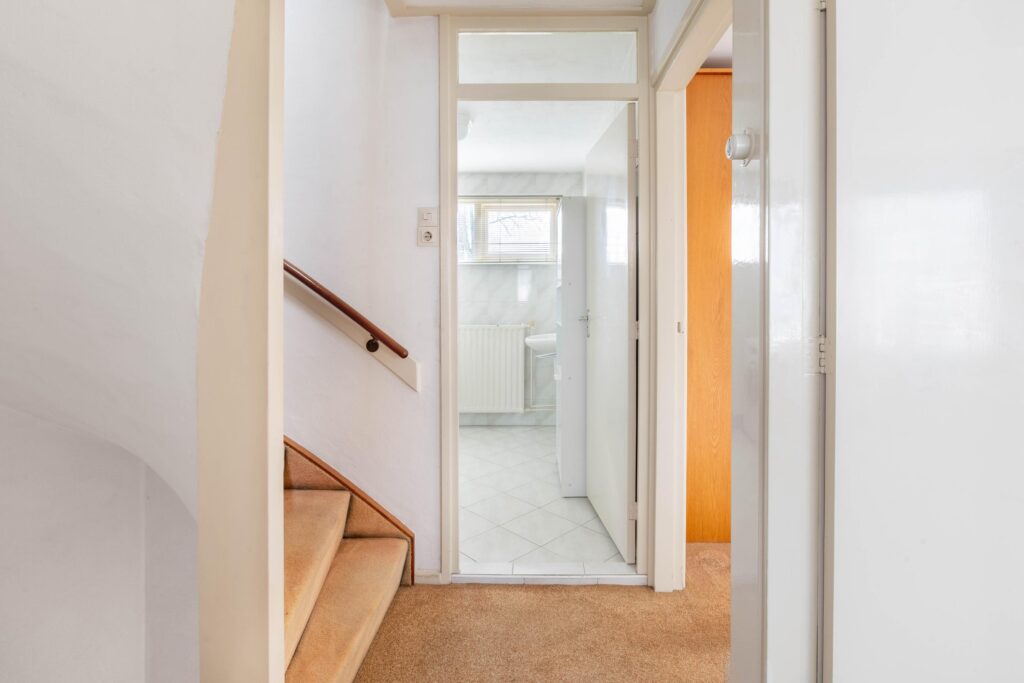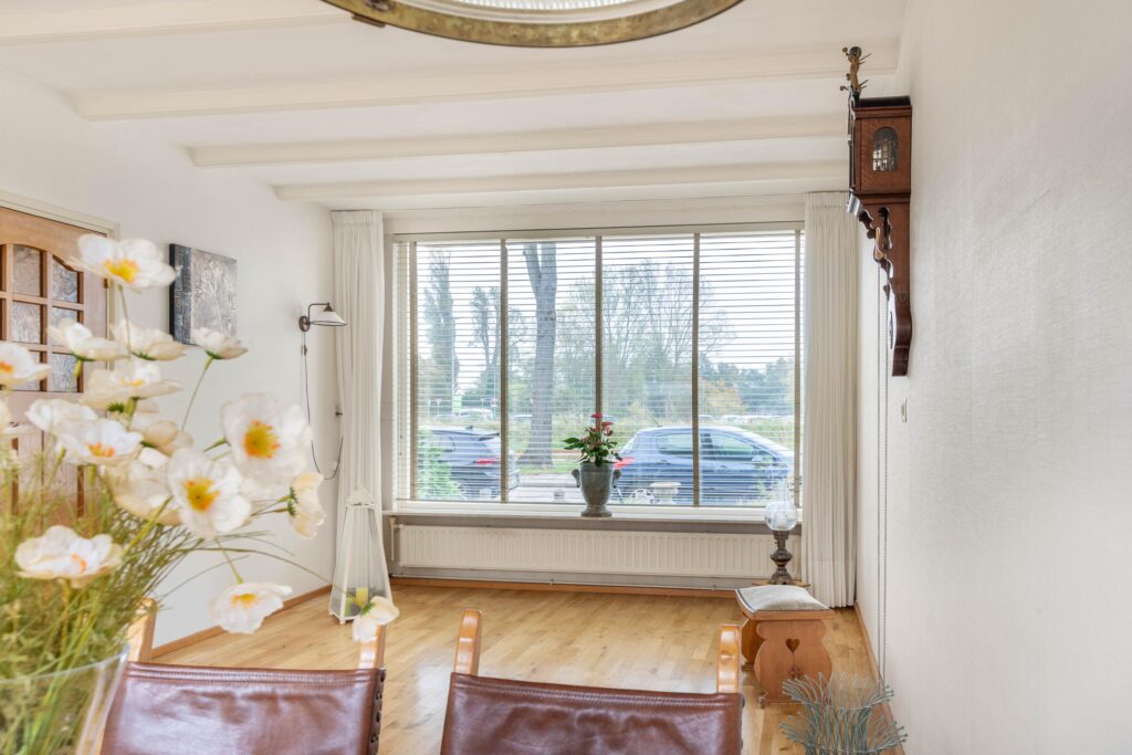Via de verzorgde voortuin bereikt u de entree met hal, toilet en toegang tot zowel de woonkamer als de dichte keuken. De woonkamer is heerlijk licht dankzij de grote raampartijen en de schuifpui aan de achterzijde. Aan de voorzijde geniet u van een vrij uitzicht over de straat, wat zorgt voor een ruimtelijk gevoel.