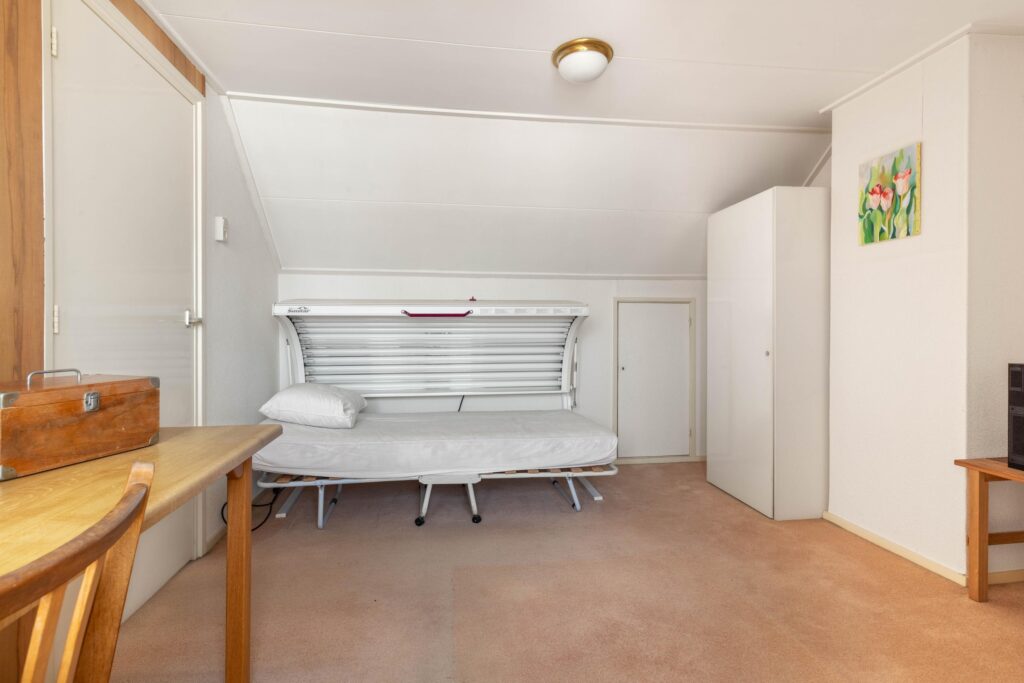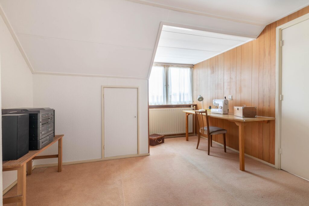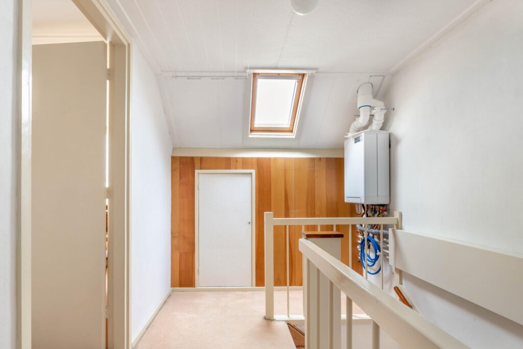 Via een vaste trap bereikt u de tweede verdieping. Hier vindt u een vierde slaapkamer met dakkapel en aparte stookruimte – ideaal als werkplek, logeerkamer of hobbyruimte.