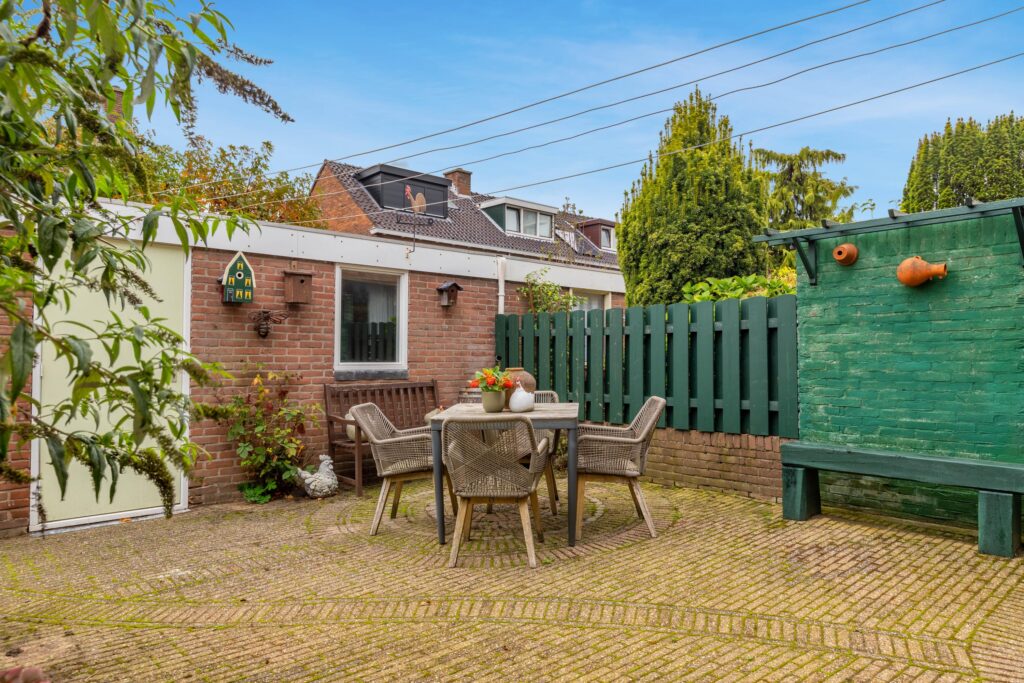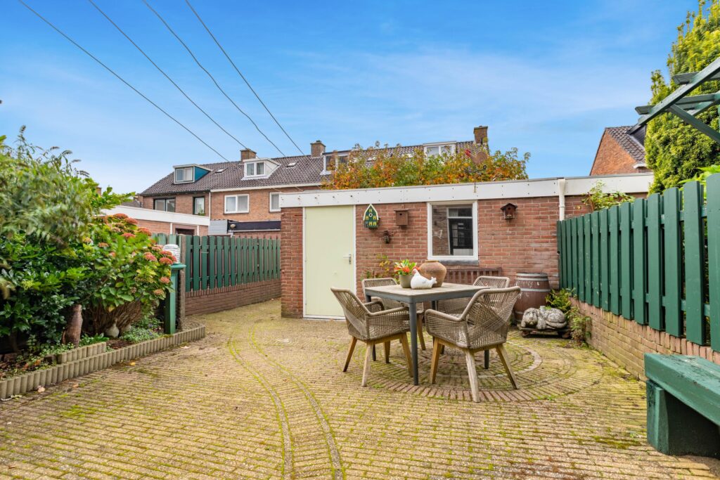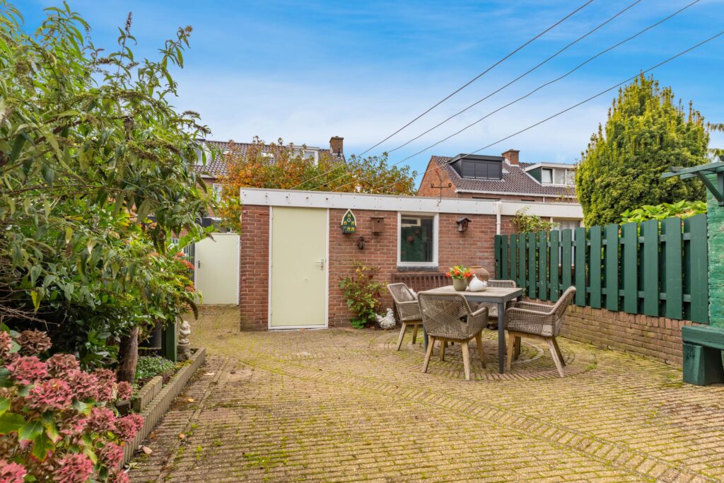 De achtertuin ligt op het noordwesten, zodat u hier volop kunt genieten van de middag- en avondzon. De tuin is verzorgd aangelegd en beschikt over een ruime vrijstaande berging (ca. 13 m²) – ideaal voor fietsen, gereedschap of een handige klusruimte.
