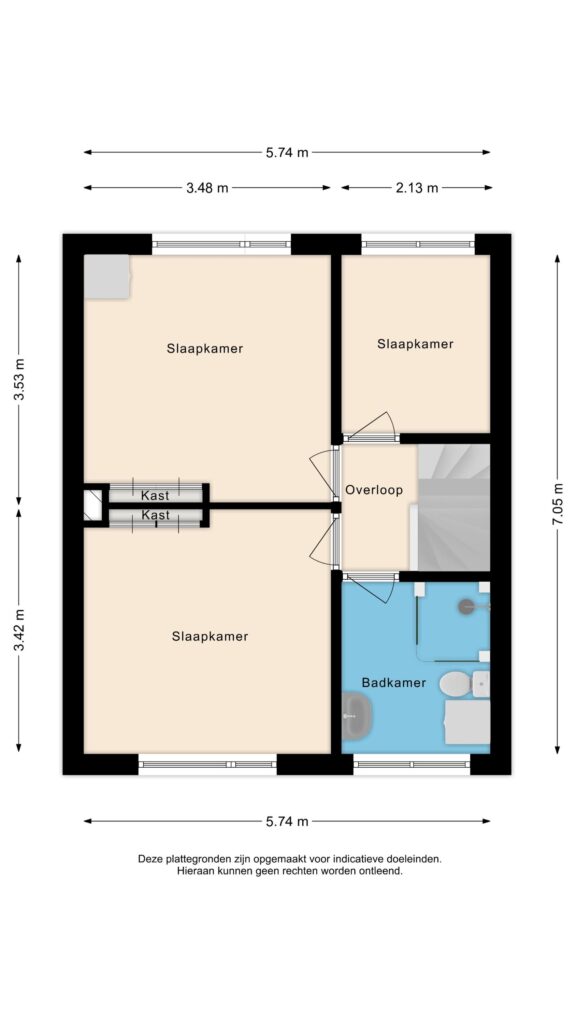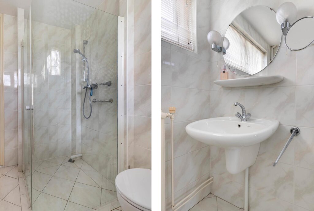 Op de eerste verdieping bevinden zich drie goed bemeten slaapkamers en de badkamer met inloopdouche, tweede toilet, wastafel en radiator. Alles netjes onderhouden en klaar voor gebruik.
