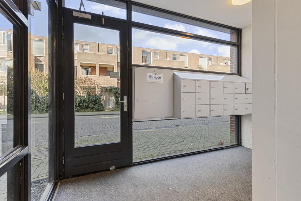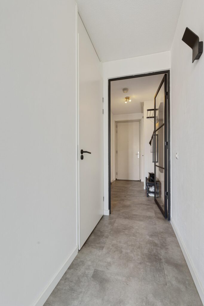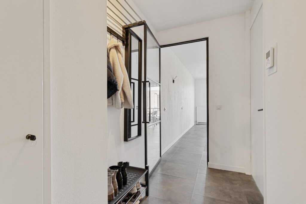 Entree/hal met intercom (2025), garderobe, meterkast en toegang tot de (ouder) slaapkamer en de woonkamer middels een fraaie stalen deur.