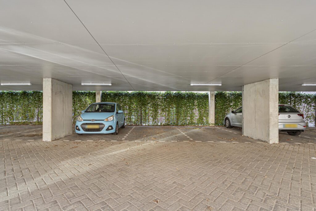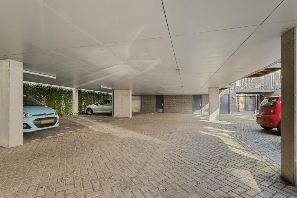 Het appartement beschikt over een eigen overdekte parkeerplaats op het (afsluitbare) binnenterrein van het complex.