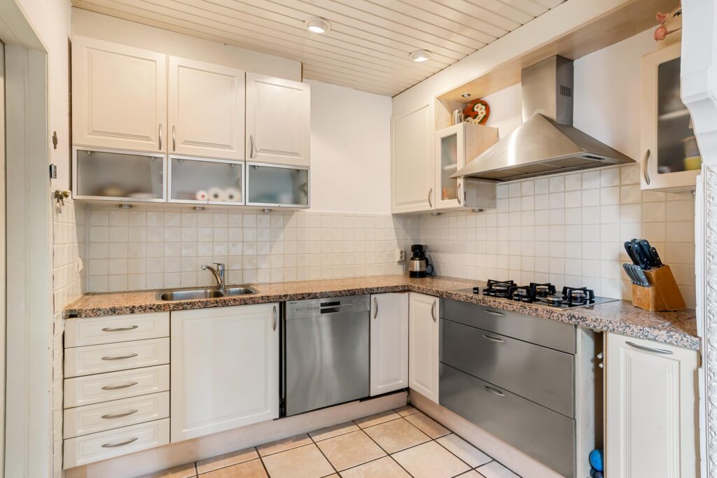 Bij binnenkomst via de voortuin komt u in de hal, met een trapopgang naar de eerste verdieping. Vanuit de hal heeft u toegang tot de gezellige woonkamer, die dankzij de open keuken een lichte en ruime uitstraling heeft. Het zitgedeelte aan de voorzijde van de woning en een open keuken aan de achterzijde, compleet uitgerust met een 5-pits gaskookplaat, vaatwasser, afzuigkap en een granieten aanrechtblad.