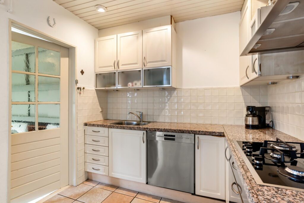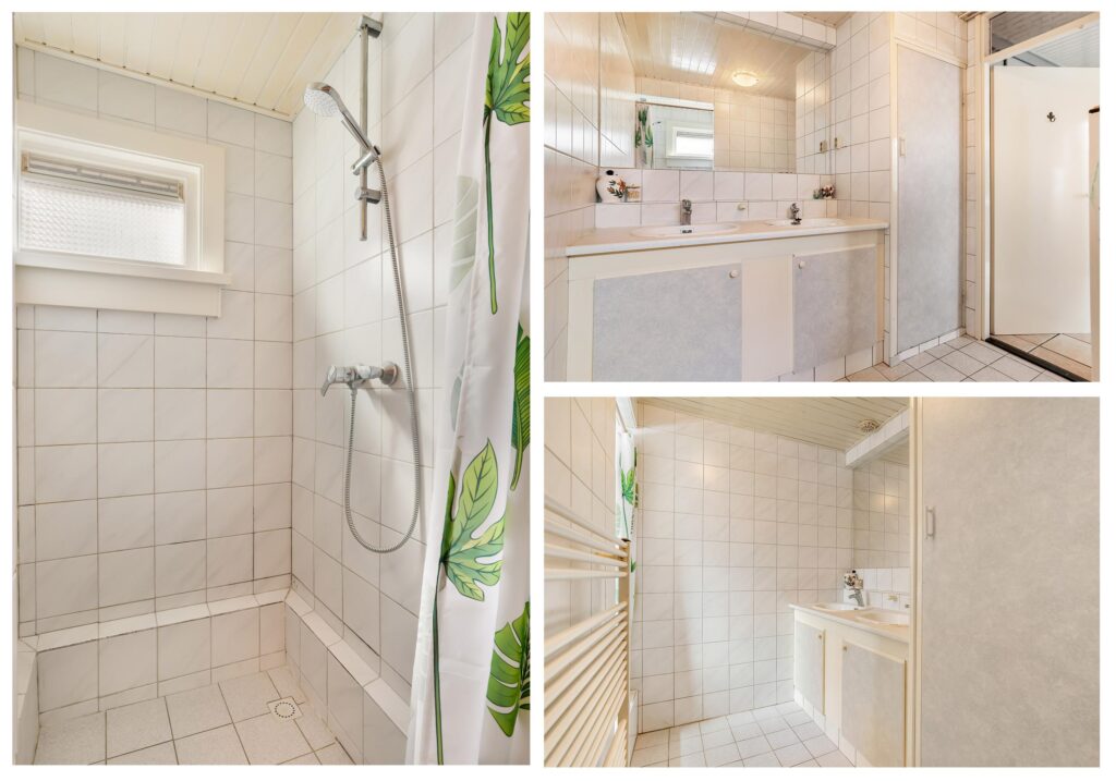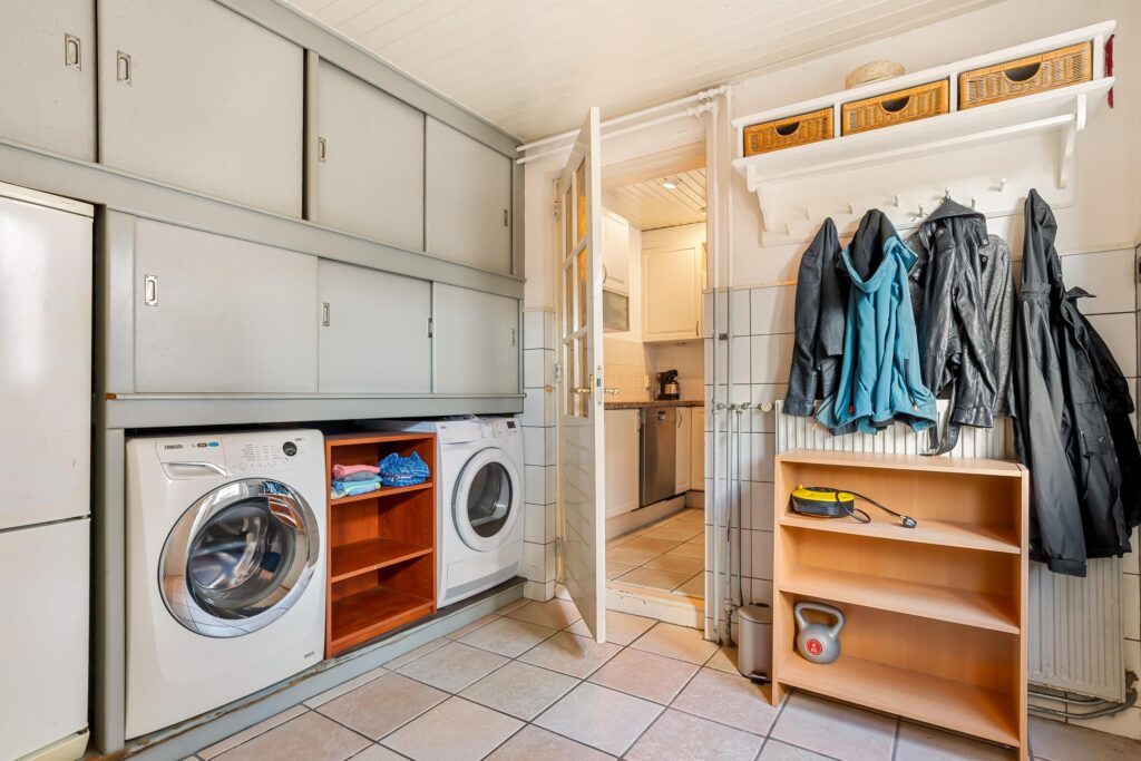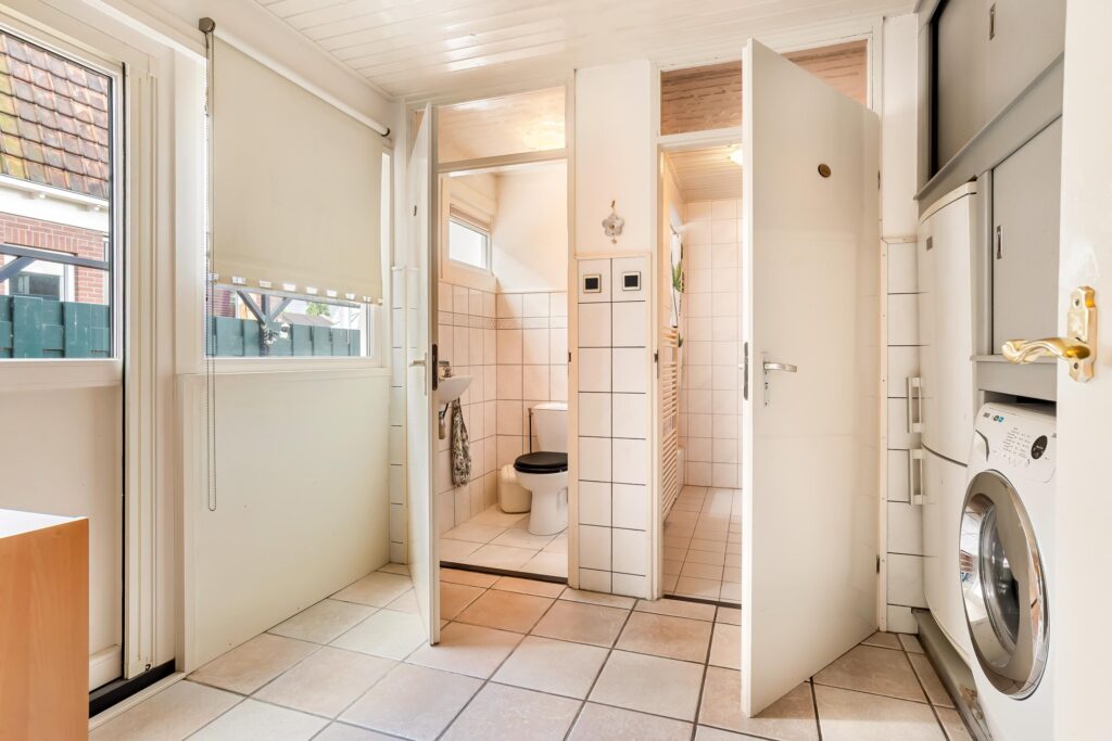 Vanuit de keuken komt u in de uitbouw met bijkeuken, een praktische wasruimte, een separaat toilet en een badkamer met douche, dubbele wastafel en een handdoekradiator. De berging is ideaal voor extra opbergruimte en heeft openslaande deuren, waardoor u gemakkelijk spullen kunt in- en uitladen. Hier bevindt zich tevens de opstelling van de cv-ketel.