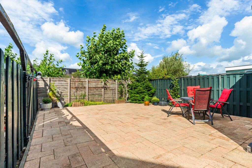 De diepe achtertuin (15 meter!) ligt op het noordwesten en biedt een heerlijke plek om te genieten van de zon of samen te komen met vrienden en familie. Of u nu houdt van tuinieren of lekker buiten zitten, deze tuin biedt de ruimte om het naar wens in te richten.