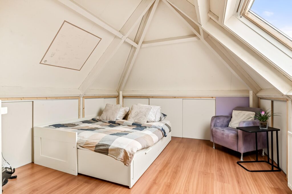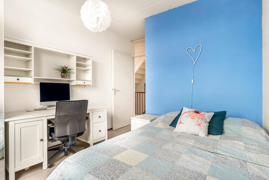 De tweede verdieping biedt nog meer mogelijkheden: een vierde slaapkamer met fonteintje én een grote multifunctionele ruimte die eenvoudig kan worden omgetoverd tot extra slaapkamer, hobbyruimte of werkkamer. Achter de knieschotten is slimme bergruimte gecreëerd, zodat u de spullen uit het zicht netjes kan opbergen.
