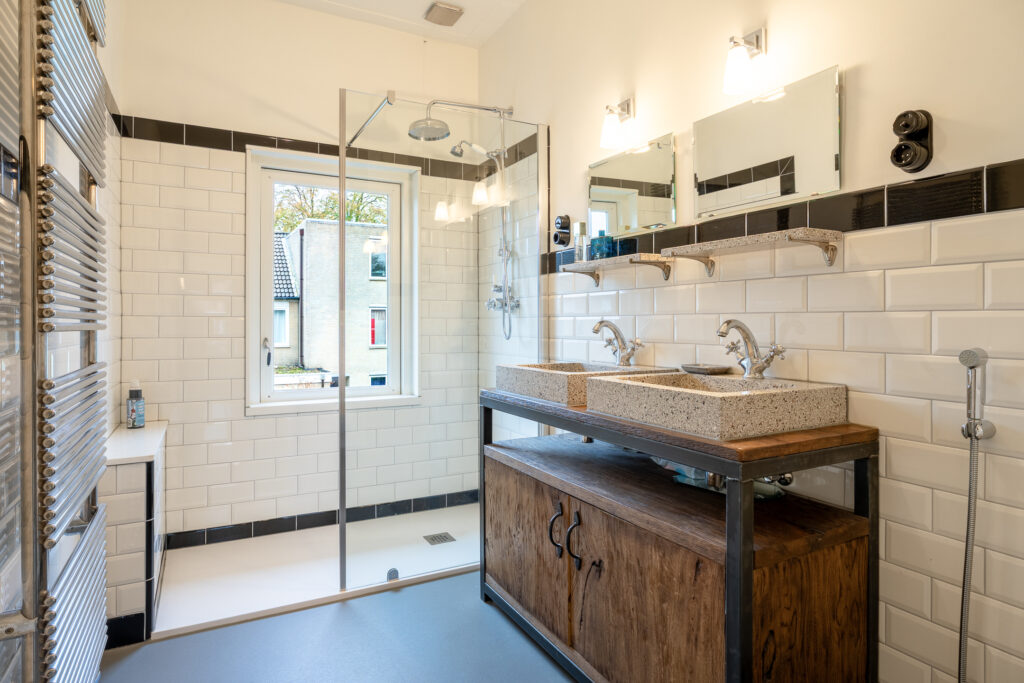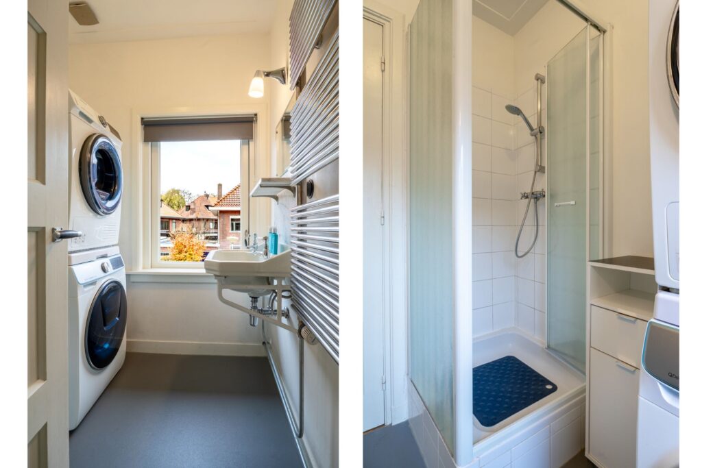 Badkamer I (ca. 2.25 x 1.78m.) is gelegen aan de voorzijde van de woning en beschikt over een douchecabine, wastafel, designradiator en de aansluitingen ten behoeve van de wasapparatuur.