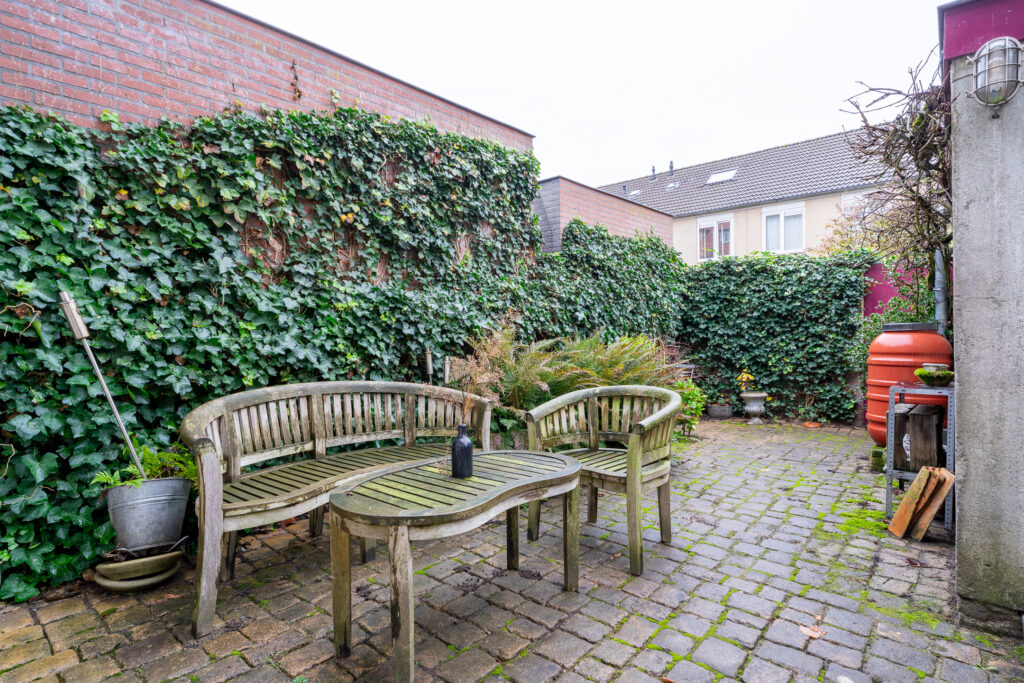 De op het noordoosten gesitueerde achtertuin biedt veel privacy is voorzien van bestrating, diverse beplanting, verlichtingspunten, achterom en een waterkraan. In de tuin is daarnaast nog de vrijstaande stenen berging gesitueerd alsmede een speelse houten overkapping, gelegen achter de berging.
