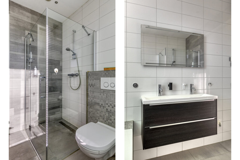 Hier vinden we drie comfortabele slaapkamers met veel lichtinval, een moderne badkamer voorzien van ligbad, douche, toilet en dubbele wastafel met meubel en een handige separate wasruimte. Ook op deze verdieping geniet je van vloerverwarming en -koeling.