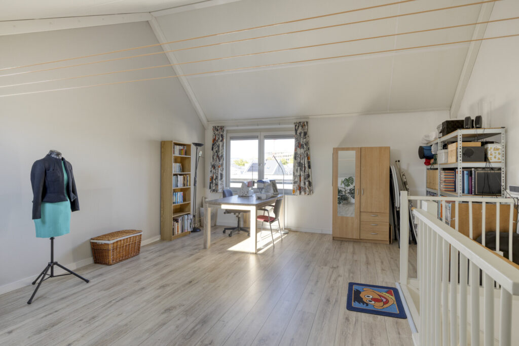 Royale open ruimte met natuurlijk daglicht aan beide zijden. Ideaal als master bedroom, thuiswerkplek of eventueel op te splitsen in twee slaapkamers. Ook op deze verdieping geniet je van vloerverwarming en -koeling.