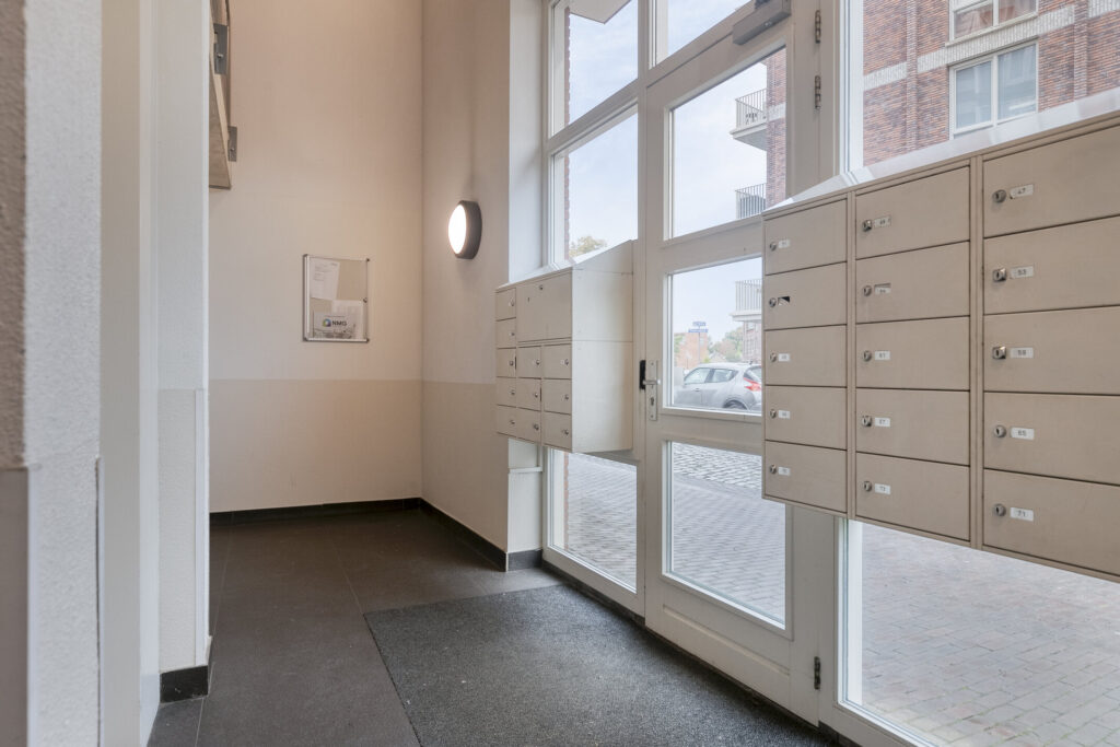 De gezamenlijke entree is voorzien van een bellentableau, brievenbussen, trapopgang en liftinstallatie. Vanuit hier heeft u toegang tot de ondergelegen parkeerkelder waar zich de privéberging en eigen parkeerplaats bevinden.